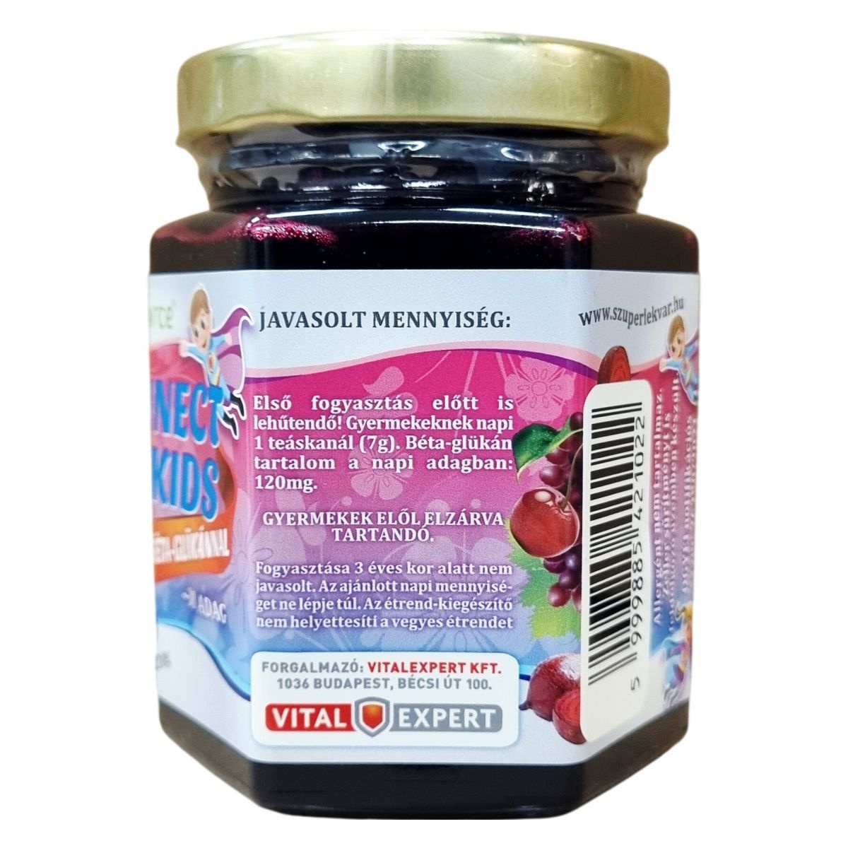 Szuperlekvár 3 év feletti gyerekeknek. 2 kg zöldség-gyümölcsből készített, magas antioxidáns hatású, magas flavonoid és polifenol tartalmú szuperkoncentrátum (BRIX: 82%).