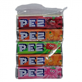 Cseresznye, narancs, eper és málna ízű szőlőcukor alapú cukorkák a PEZ figurák utántöltésére.