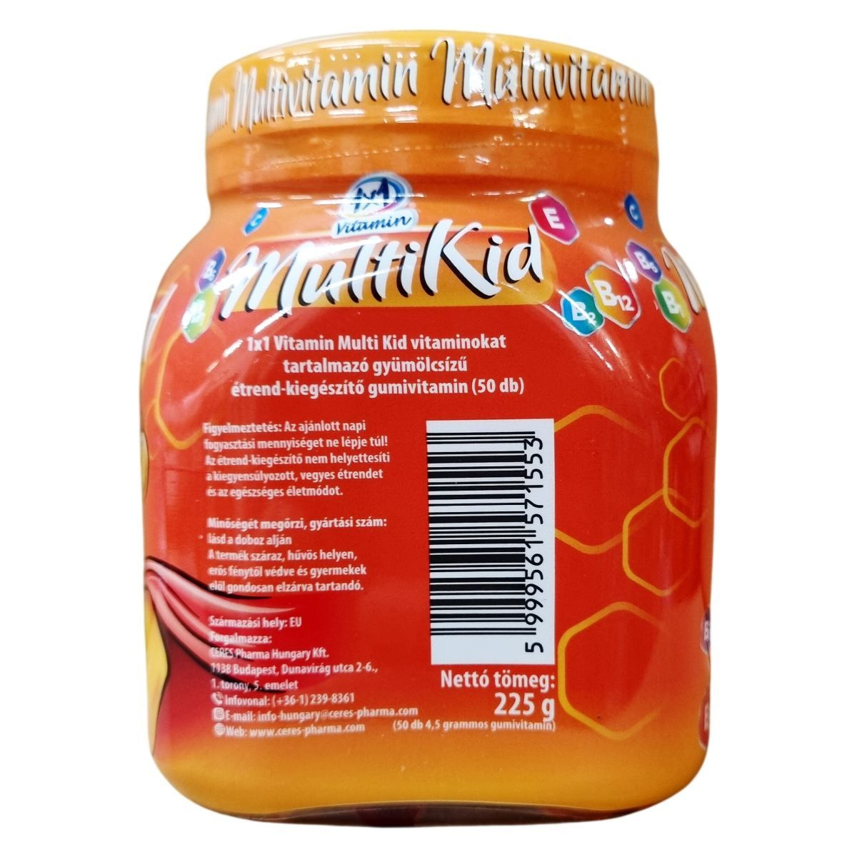 Az 1x1 Vitamin Multi Kid egy vitaminokat tartalmazó gyümölcsízű étrend-kiegészítő gumivitamin, amely 10 féle aktív összetevőt tartalmaz. A C- és E-vitamin hozzájárulhat a sejtek oxidatív stresszel szembeni védelméhez, míg a B6-, B12- és C-vitamin támogathatja az immunrendszer normál működését. A termék nettó tömege 225 g, ami 50 darab 4,5 grammos gumivitaminnak felel meg. Ez az étrend-kiegészítő különösen gyermekek számára készült, hogy a mindennapi vitaminbevitel megkönnyítésére szolgáljon. A termék származási helye az Európai Unió.