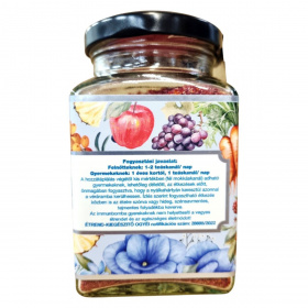 A termék nem tartalmaz semmilyen hozzáadott cukrot, színezéket vagy tartósítószert. Száraz, hűvös helyen, 24 °C alatt tárolandó. Közvetlen napfénytől, párától védve tartandó. Felbontás után 3 hónapon belül fogyasztandó. Az étrend-kiegészítő nem helyettesíti a vegyes étrendet és az egészséges életmódot.