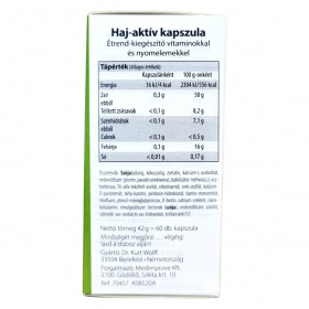 A haj-aktív kapszula egy kiegyensúlyozott formula vitaminokkal, nyomelemekkel és értékes növényi kivonatokkal, melyek hozzájárulhatnak a haj egészségéhez, valamint a fejbőr állapotának javításához. A benne található biotin és cink támogatják a hajhagymák és a fejbőr vitalitását, míg a szelén fontos nyomelemként segítheti a hajszerkezet megerősítését. Az egészséges fejbőr elősegítheti a haj erőteljes növekedését, míg a megfelelő tápanyagellátás hozzájárulhat a hajszálak egészségéhez, megakadályozva a szárazságot, törékenységet és vékonyságot. A termék laktóz- és gluténmentes, így érzékenyek számára is alkalmas lehet.