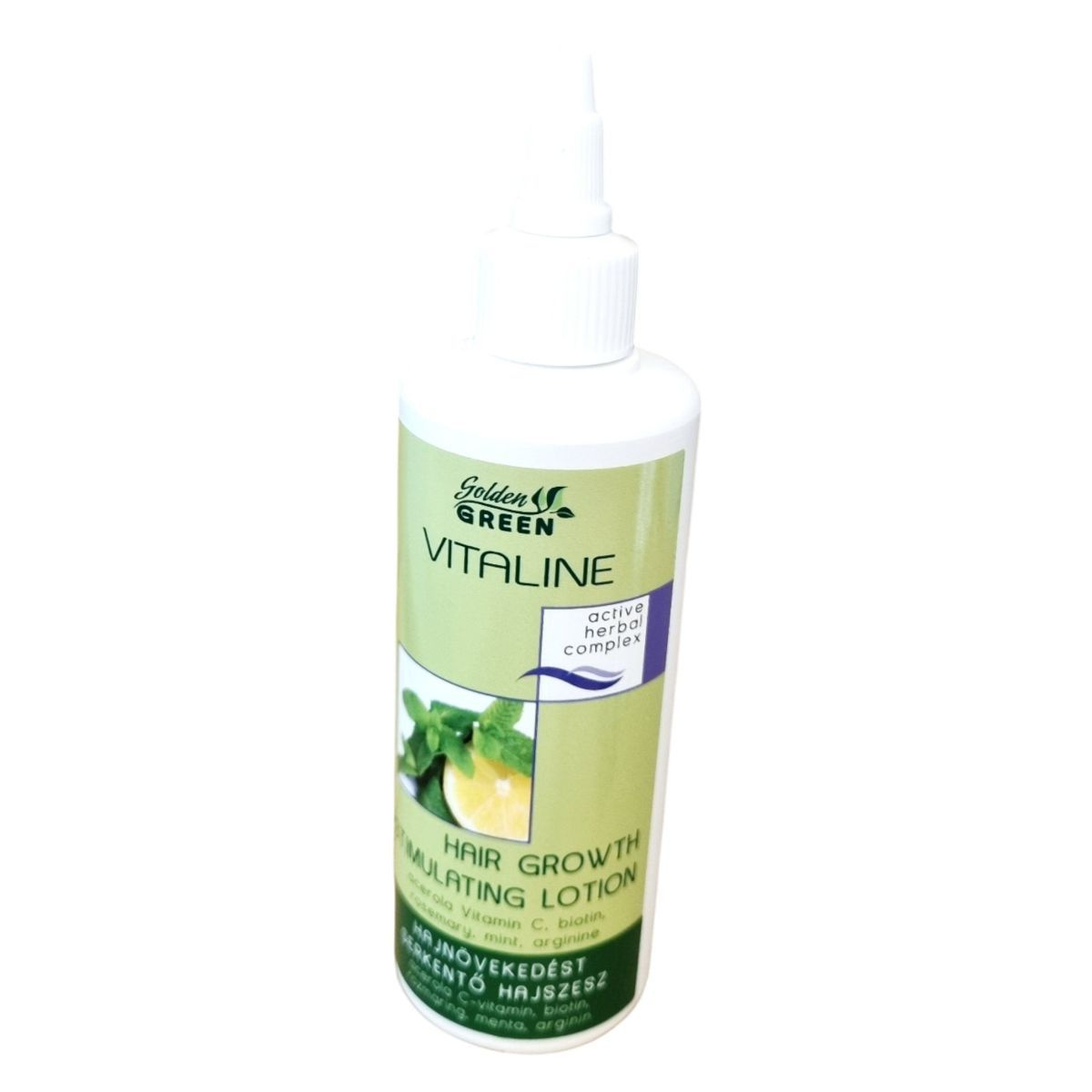 A Golden Green Vitaline Hajnövekedést Serkentő Hajszesz olyan növényi eredetű aktív komplexet tartalmaz, amely acerola C-vitaminnal, biotinnal, rozmaring- és mentakivonattal támogatja a fejbőr vérkeringését és vitalitását. Rendszeres használata segíthet csökkenteni a hajhullást, élénkítheti a hajhagymákat, és elősegítheti a haj természetes növekedését. Kíméletes, alkoholos alapú formulája frissítő érzetet nyújthat a fejbőrön, miközben fényesebb, egészségesebb haj megjelenéséhez járulhat hozzá.