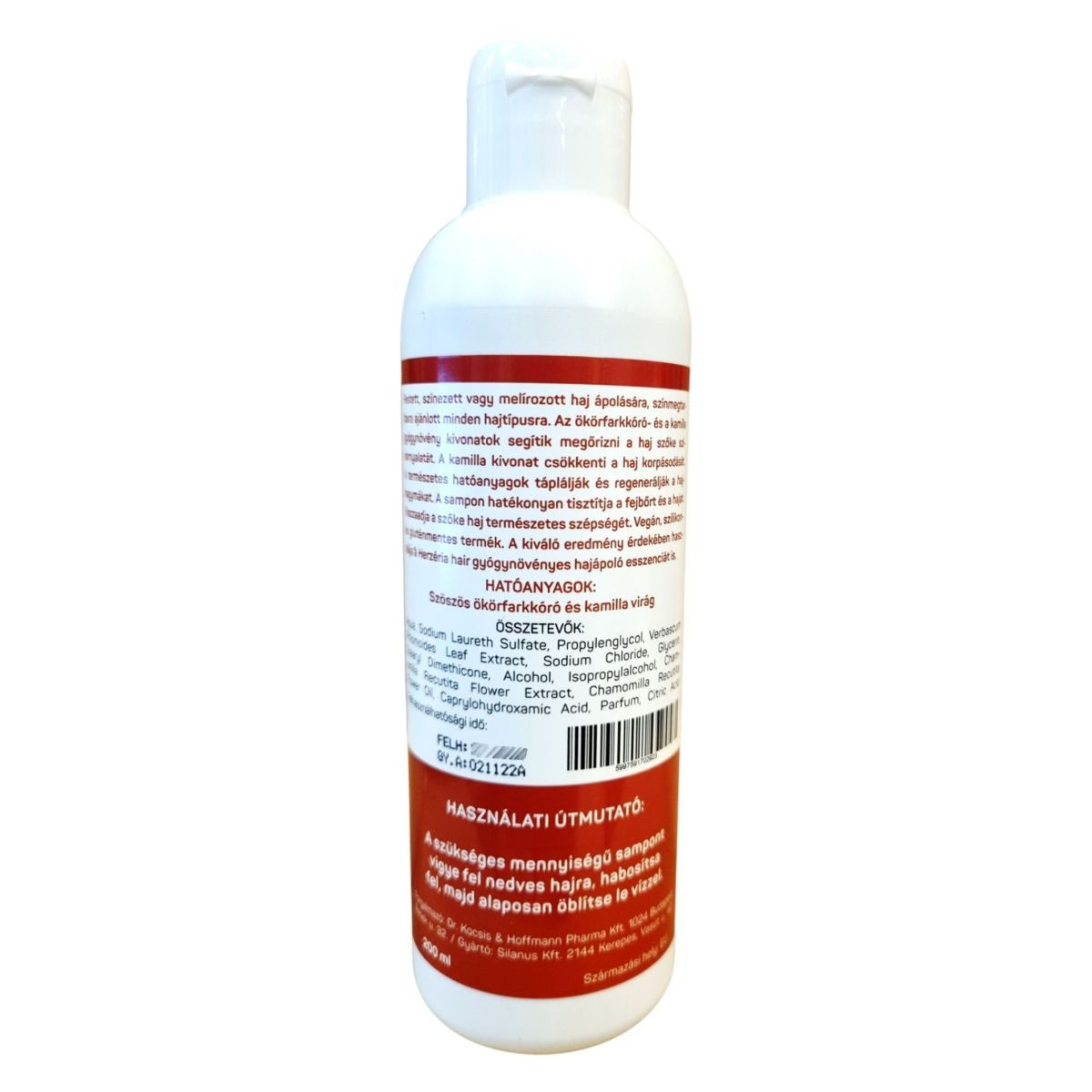 A HERZÉRIA Gyógynövényes SZÍNÁPOLÓ SAMPON kifejezetten szőke hajra lett kifejlesztve, hogy segíthessen megőrizni a haj színének természetes fényét. Az ökörfarkkóró- és kamilla kivonatok hozzájárulhatnak a haj ápolásához és a korpásodás csökkentéséhez. A sampon hatékonyan tisztíthatja a fejbőrt és a hajat, miközben táplálhatja és regenerálhatja a hajhagymákat. A termék vegán, szilikon- és gluténmentes, így különböző étrendi igényeknek is megfelelhet. A legjobb eredmény érdekében javasolt a Herzéria hair gyógynövényes hajápoló esszencia használata is.