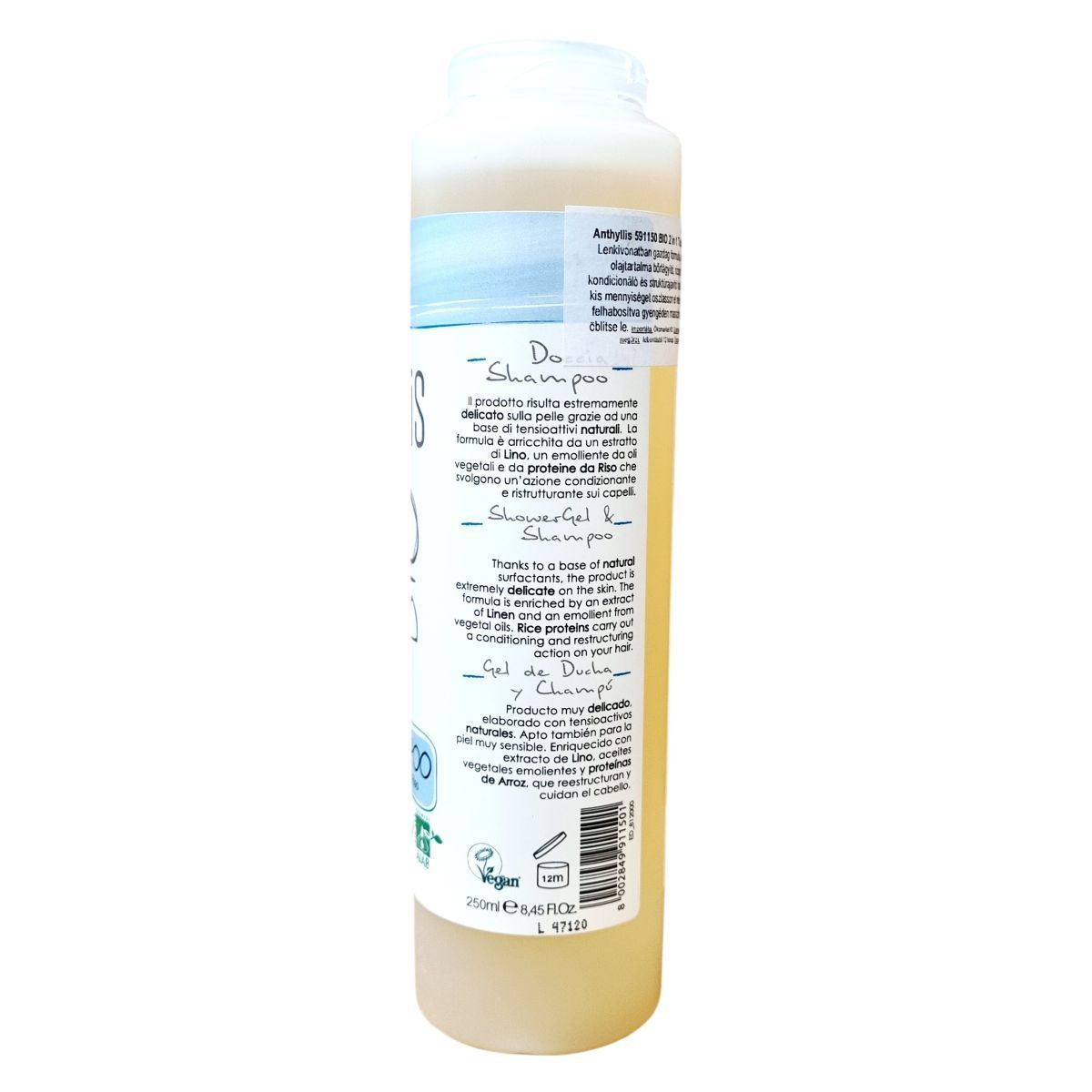Ez a tusfürdő és sampon egyaránt alkalmas a bőr és a haj ápolására. A termék természetes tenzidekre épül, így kíméletes a bőrhöz, még az érzékeny bőrhöz is. A lenmag kivonat bőrpuhító hatással bír, míg a benne található rizsfehérjék kondicionáló és struktúrajavító hatást fejtenek ki a hajon. Növényi olajok emolliens tulajdonságai hozzájárulnak a bőr ápolásához, a termék parfümözése pedig kizárólag természetes illóolajokkal történik, mesterséges illatanyagok nélkül. A termék nem tartalmaz SLS, SLES, PEG, fenoxietanolt, parabéneket, lúgos szappanokat, etil-alkoholt és mesterséges színezékeket, és dermatológiailag tesztelt. Az összetevők részben organikus gazdálkodásból származnak. A termék Olaszországban készült.