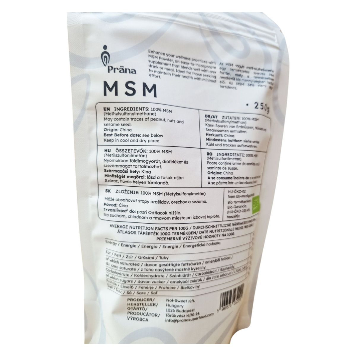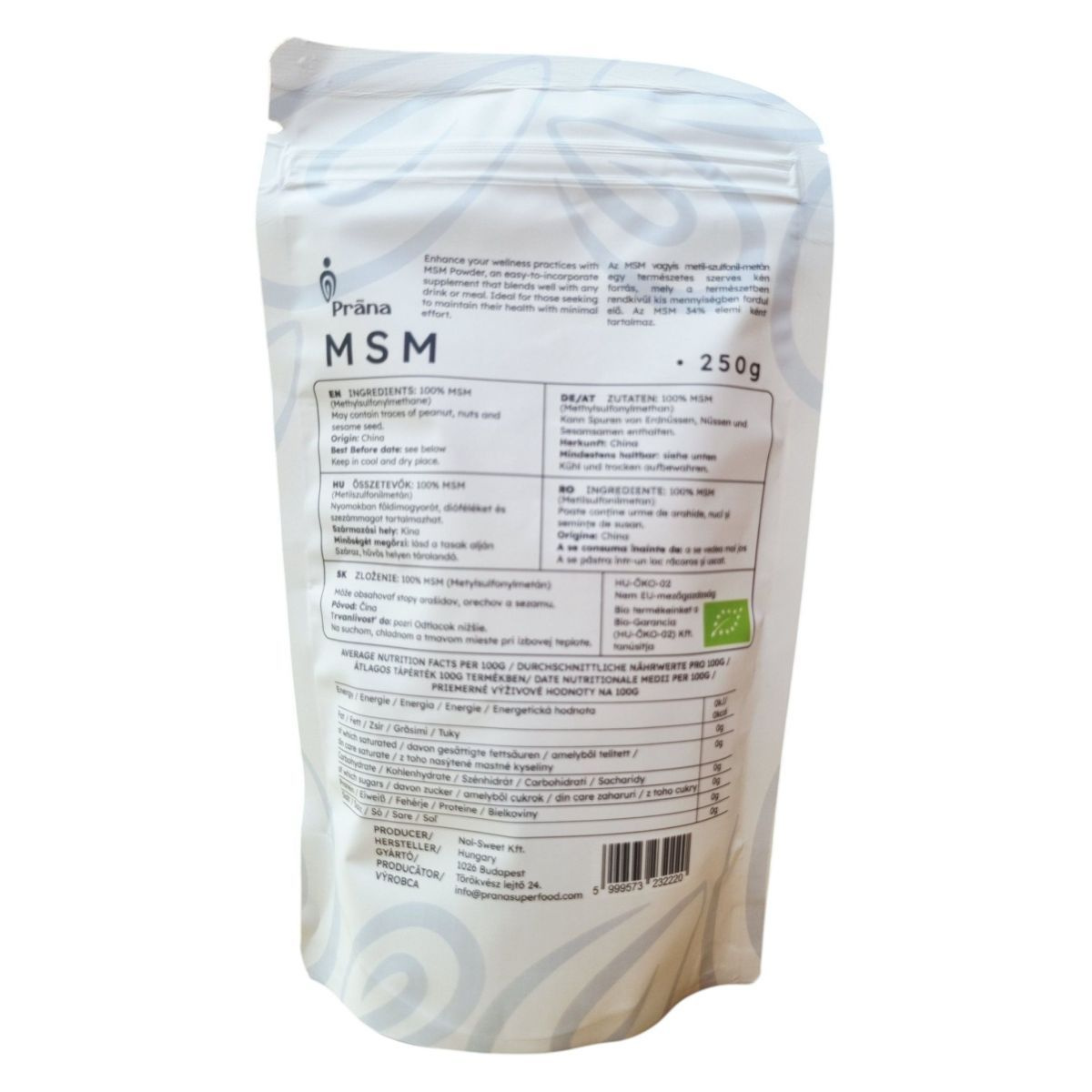 A Prāna MSM egy 100% természetes étrend-kiegészítő, amely Kínából származik. A termék bio, vegán és gluténmentes, így különböző étrendi igényekhez is alkalmazkodik. Az MSM (Metil-szulfonilmetán) egy olyan vegyület, amely hozzájárulhat az általános jóléthez, és könnyen beilleszthető a mindennapi étrendbe. A termék nyomokban földimogyorót, dióféléket és szezámmagot tartalmazhat, ezért allergiásoknak érdemes figyelniük erre. A Prāna MSM ideális választás lehet azok számára, akik természetes módon szeretnék támogatni egészségüket.