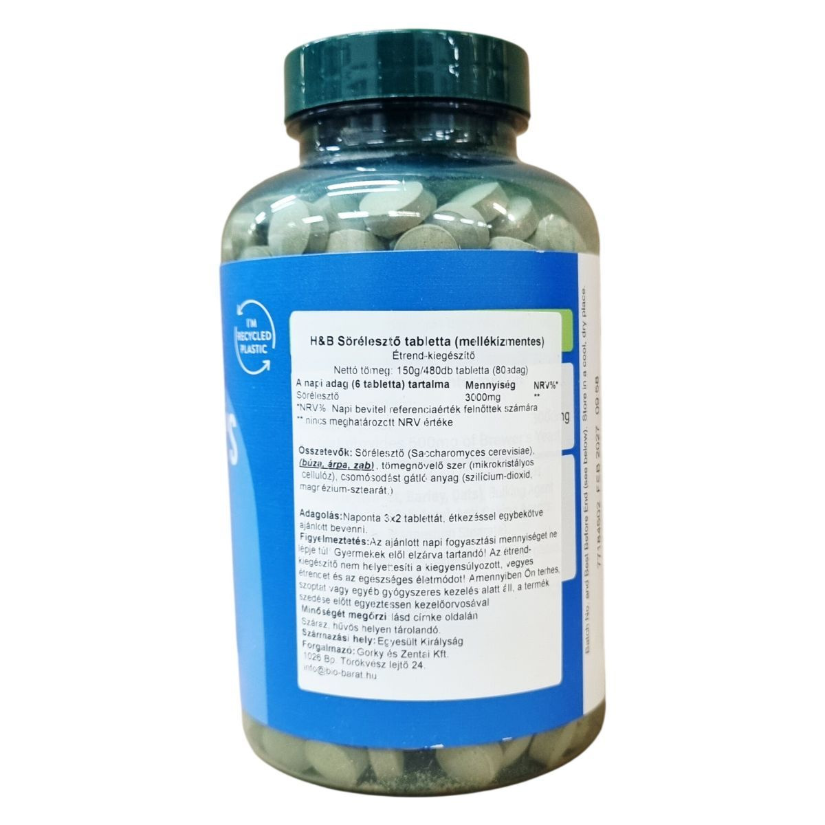 A termék nettó tömege 150 g, mely 480 tablettát tartalmaz, ez körülbelül 80 adag. Az ajánlott napi adag hatóanyagtartalma 3000 mg sörélesztő. A készítmény mentes mesterséges ízesítőktől, színezékektől és édesítőktől. A csomagoláson található biztonsági záróelem hiányában a termék nem használható. A termék származási helye az Egyesült Királyság. Gyermekek elől gondosan elzárandó, és használata során figyelembe kell venni, hogy étrend-kiegészítő, nem helyettesítheti a kiegyensúlyozott táplálkozást és az egészséges életmódot. Amennyiben mellékhatás jelentkezik, a használatot fel kell függeszteni és orvoshoz kell fordulni.