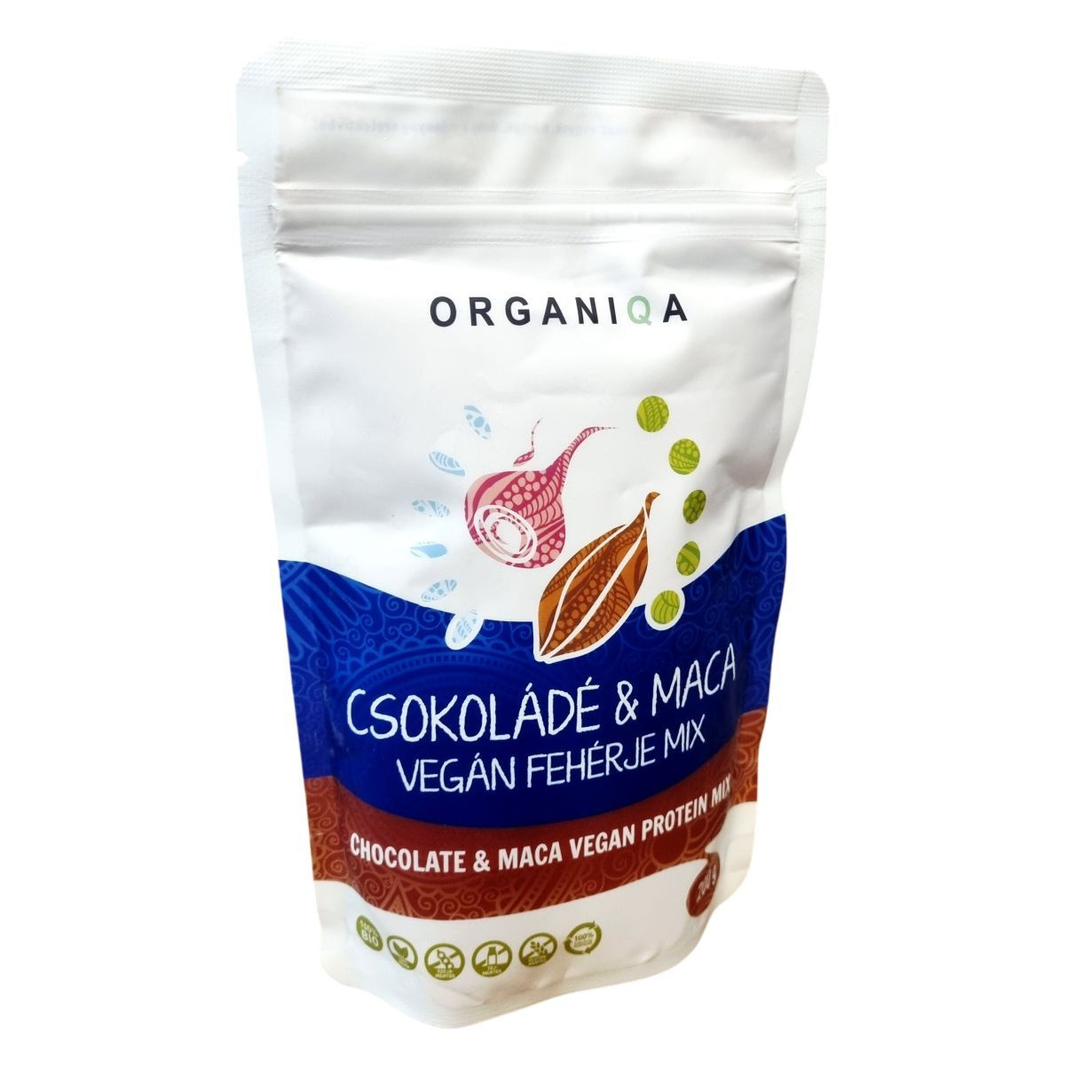 Az Organiqa Csokoládé & Maca Vegán Fehérje Mix egy 100% bio és vegán fehérje keverék, amely csokoládé-maca ízesítéssel készült. A termék magas fehérjetartalmú, több mint 50%-os fehérjetartalommal rendelkezik, és nem tartalmaz hozzáadott cukrot, adalékanyagokat vagy aromákat. A perui nyers kakaópor és a maca por energetizáló hatású lehet, míg a bio stevia levél őrlemény természetes édesítőszerként szolgál. A termék ideális lehet azok számára, akik húsmentesen szeretnék kiegészíteni napi fehérjebevitelüket, és sportoláshoz is ajánlott, ha izmaikat szintetikus szerek nélkül szeretnék fejleszteni. A termék 100% újrahasznosítható tasakban kapható, és a Biokontroll Hungária Nonprofit Kft. ellenőrzi.