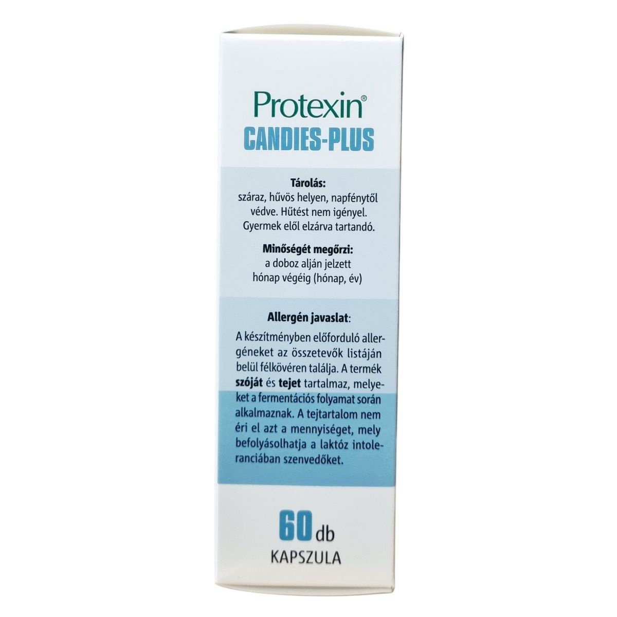 A Protexin® CANDIES-PLUS olyan étrend-kiegészítő készítmény, amely élő baktériumtörzseket, grapefruit kivonatot és fokhagyma port tartalmaz. A bélflóra természetes baktériumainak száma különböző okokból, például antibiotikum kezelés, étrendváltoztatás, modern életstílus vagy utazások kellemetlen hatásai miatt lecsökkenhet. Ilyenkor a megfelelő táplálkozás mellett az élőflóra pótlása szükségessé válhat. A termék 7-féle baktériumtörzset tartalmaz élő formában, amelyek együtt hozzájárulhatnak a bélflóra egészségének támogatásához. A Protexin® CANDIES-PLUS kapszula nettó tömege 32,76 g, a termék hűtést nem igényel, és alkalmazása során fontos betartani az ajánlott mennyiséget, valamint a gyermekek elől való elzárást. A készítmény szója- és tejtartalmú, ugyanakkor a benne lévő tejmennyiség nem feltétlenül befolyásolja a laktóz-intoleranciában szenvedőket. A termék gyártója az ADM Protexin Limited, forgalmazója a VitaminKosár Kft.