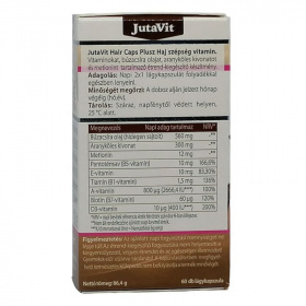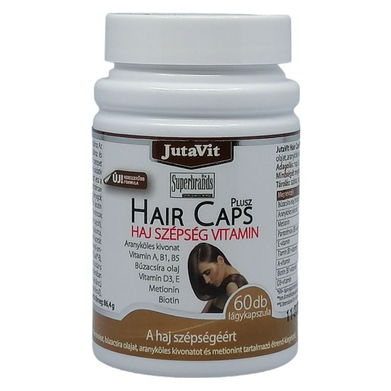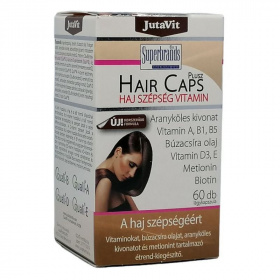 A B5 vitamin (más néven pantoténsav) hozzájárulhat a hajképzésben résztvevő sejtek energiatermelő folyamataihoz. A hajszálak főként keratin nevű fehérjemolekulákból épülnek fel, ezek építőelemei a cisztin és a metionin aminosavak. Adagolás: napi 2x1 kapszulát folyadékkal egészben lenyelni. Tárolás: Szobahőmérsékleten, közvetlen napfénytől védve, saját dobozában! Figyelmeztetés: az ajánlott napi fogyasztási mennyiséget ne lépje túl, az étrend-kiegészítő nem helyettesíti a kiegyensúlyozott vegyes étrendet, és az egészséges életmódot. Kisgyermekek elől elzárva tárolandó. A köles, a cisztin és a B5 vitamin kombinációja segítik az egészséges haj, köröm növekedést és a hajgyökerek anyagcseréjét. A búzacsíra olaj javítja a bőr állapotát, rugalmasságát és feszességét, és elősegíti a természetes bőrsejtek megújulását. Természetes módon hidratálja a bőrt, normalizálva a nedvesség szintjét. A biotin a természetes hajnövekedési folyamat egyik fő komponense. Hozzájárul a haj természetes növekedéséhez, megújulásához. Napi adag tartalmaz: Arany köles kivonat 150mg, RDA % -, Búzacsíra olaj 300mg, RDA % -, B1 vitamin 1,5mg, RDA % 136, B5 vitamin 12mg, RDA % 200, Biotin (H vitamin) 60mcg, RDA % 120, Cisztin 100mg, RDA % -, Metionin 100mg, RDA % -. RDA % = Felnőttek számára ajánlott napi bevitel. Összetevők: Szójaolaj, zselatin, arany köles kivonat, búzacsíra olaj, nedvesítőszer (glicerin), biotin (H), cisztin, metionin, tisztított víz, pantoténsav (B5), színezék (titan dioxid, sárga vas oxid), tiamin (B1).