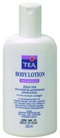 Emellett a környezeti ártalmak - UV-sugarak, szmog, stressz, tartósítószerek stb. - elősegítik a szabad gyökök képződését, amelyek csökkentik a bőr rugalmasságát. A bőrsejtek gyors újratermelődéséhez elengedhetetlenül szükséges a sejtek megfelelő táplálása. A helytelen életmód viszont - a stressz, a dohányzás, a túlzásba vitt napozás, az erős ibolyántúli sugárzás káros hatásai stb. - a bőr korai öregedéséhez vezethet. A bőr öregedése 10-20 %-ban genetikus öregedés, 80-90 %-ban fényöregedés. A bőr megújulása: naponta 500 millió bőrsejt pusztul el. A megújulási folyamat, 24-28 napot vesz igénybe. Bebizonyosodott, hogy a legnagyobb mértékű károsodás a hámrétegben történik, ahol a napsugarak káros hatása jóval később, gyakran akár tíz vagy még több év múlva jelentkezik. A napnak veszélyes sugarai közé ma már nem csak az ultraibolya sugarakat - UVB, rövid UVA, hosszú UVA -soroljuk, hanem az infravörös sugarak is részt vesznek a káros bőrfolyamatokban. Ezekre a káros hatásokra biológiai reakciója a bőrnek a barnulás. Az önvédelmi rendszer kialakulásához, 21 napra van szükség. A pigmentáció (barnulás), a megnövekedett melanintermelés védelmet nyújt a nap okozta bőrvörösödéssel szemben, de nem biztosít védelmet a bőr öregedése ellen. A termékek különlegességét a zöld tea kivonat , valamint az ásványi anyagok és nyomelemek biztosítják. Tea Testápoló: Segít megőrizni a bőr rugalmasságát, regenerál és felfrissít, erőteljes gyulladásgátló. Megakadályozza, hogy a bőrön lévő mikroorganizmusok kifejtsék káros hatásaikat. Megelőzhetők, megszüntethetők a bőr elfertőződései, gombás fertőzései, a pattanások felülfertőzései stb. Rendszeres használatával feszessé, egészségessé varázsolják bőrünket. Gyorsan felszívódik, nem hagy zsírréteget a bőr felületén. Összetevők: Zöld tea (Camellia Sinensis), Emulgade SE-PF (Glyceryl Stearate, Ceteareth-20, Ceteareth-12, Cetearyl Alcohol, Cetyl Palmitate), Cetiol OE (Dicaprylyl Ether), Cetiol V (Decyl Oleate), Sorbit (Sorbitol), Arabesque (Parfum), Hydagen CMF (Chitosan Glycolate), Microcare PM5 (Phenoxyethanol, Methyl Paraben, Ethyl Paraben, Propyl Paraben, Butyl Paraben, Isobutyl Paraben).