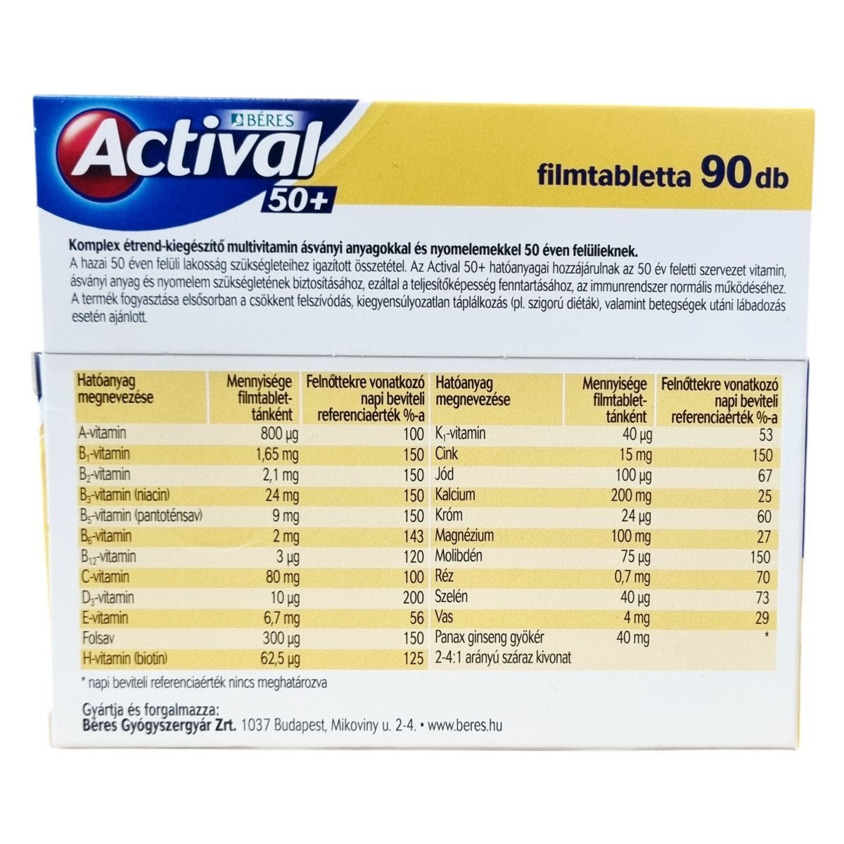 Az Actival 50+ filmtabletta komplex étrend-kiegészítő multivitamin ásványi anyagokkal és nyomelemekkel 50 éven felülieknek.
