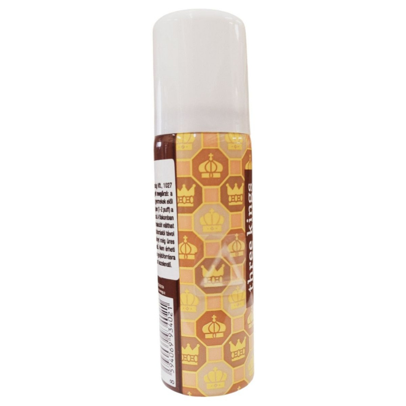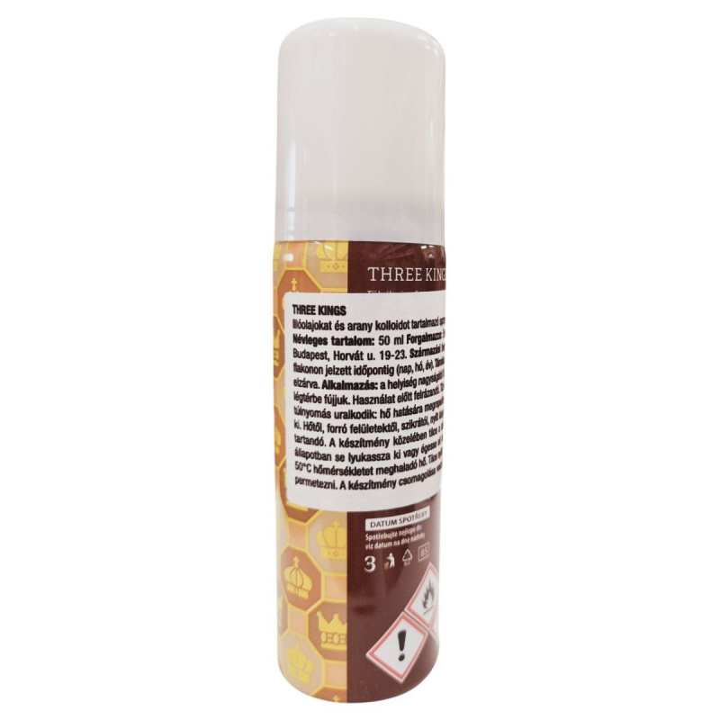 A spray értékes tömjén, mirha, szegfűszeg, fahéj, eukaliptusz, rozmaring és citrom esszenciákat, valamint igazi aranyrészecskéket tartalmaz.