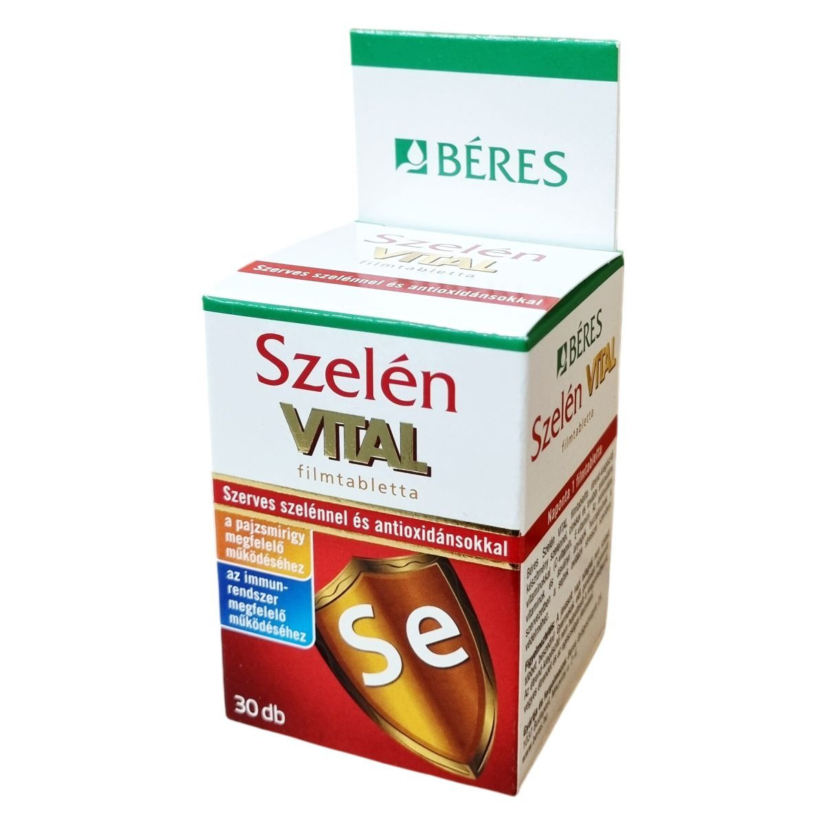 A Béres Szelén VITAL filmtabletta szelénnel, cinkkel és antioxidáns vitaminokkal (C-vitamin, E-vitamin) készül. A szelén hozzájárulhat a pajzsmirigy megfelelő működéséhez, a haj és a köröm normál állapotának fenntartásához, a sejtek oxidatív stresszel szembeni védelméhez és az immunrendszer megfelelő működéséhez. A C- és E-vitamin, valamint a cink antioxidáns hatásuk révén támogathatják a sejtek védelmét az oxidatív stresszel szemben. Az A- és a C-vitamin, valamint a cink hozzájárulhatnak az immunrendszer megfelelő működéséhez, így az egészség megőrzéséhez. A készítményben található antioxidáns vitaminok és ásványi anyagok egy komplex támogatást nyújthatnak a szervezet számára. A termék napi egyszeri adagolása egyszerűvé teszi a használatát, amelyet célszerű étkezés után egy pohár vízzel bevenni.