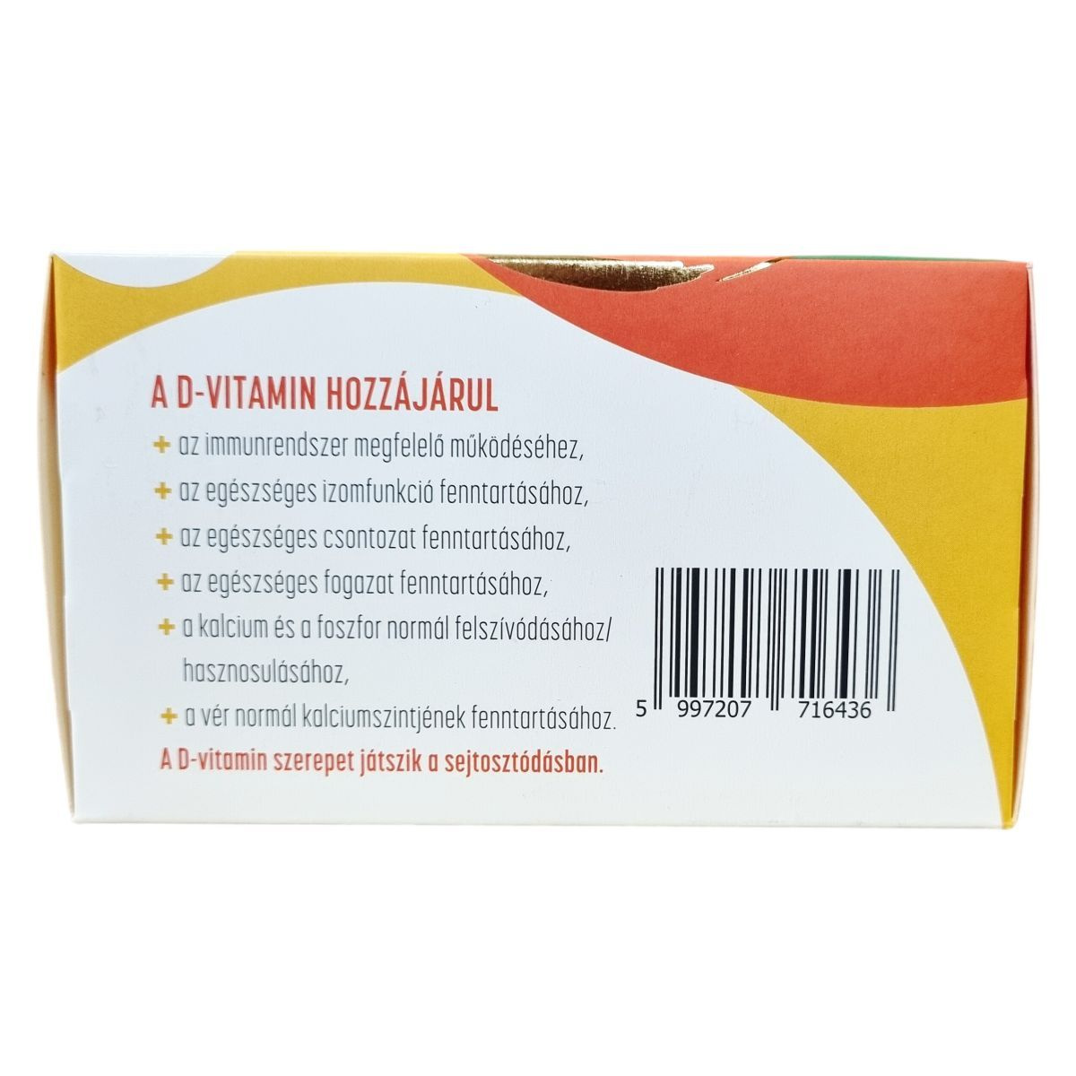 A D-vitamin hozzájárulhat az immunrendszer megfelelő működéséhez, az egészséges izomfunkció, csontozat és fogazat fenntartásához, valamint a kalcium és foszfor normál felszívódásához és hasznosulásához. A D-vitamin szerepet játszhat a sejtosztódásban, és segítheti a vér normál kalciumszintjének fenntartását. A termék olívaolajban készült, lágyzselatin kapszula formátumban kapható.
