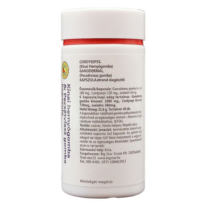 Alkalmazás: Napi 3x2 Cordyceps+Ganoderma Kivonat Kapszula fogyasztása javasolt, étkezés előtt.