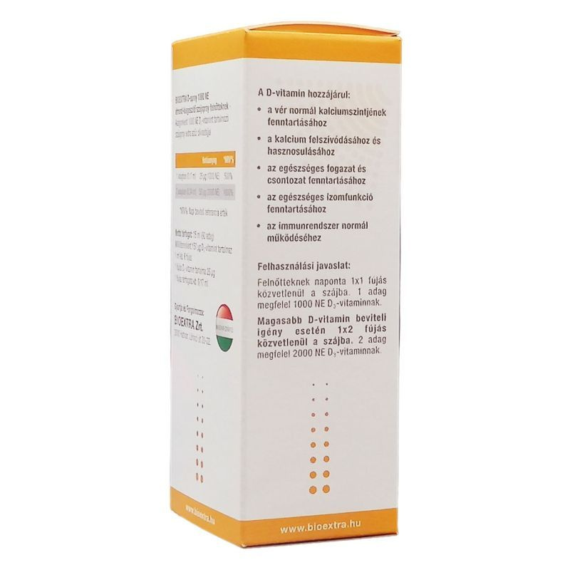 Összetevők: extra szűz olívaolaj és kolekalciferol (D3-vitamin). Felhasználási javaslat: Felnőtteknek naponta 1x1 fújás közvetlenül a szájba. 1 adag megfelel 1000 NE D3-vitaminnak. Magasabb D-vitamin beviteli igény esetén 1x2 fújás közvetlenül a szájba. 2 adag megfelel 2000 NE D3-vitaminnak.