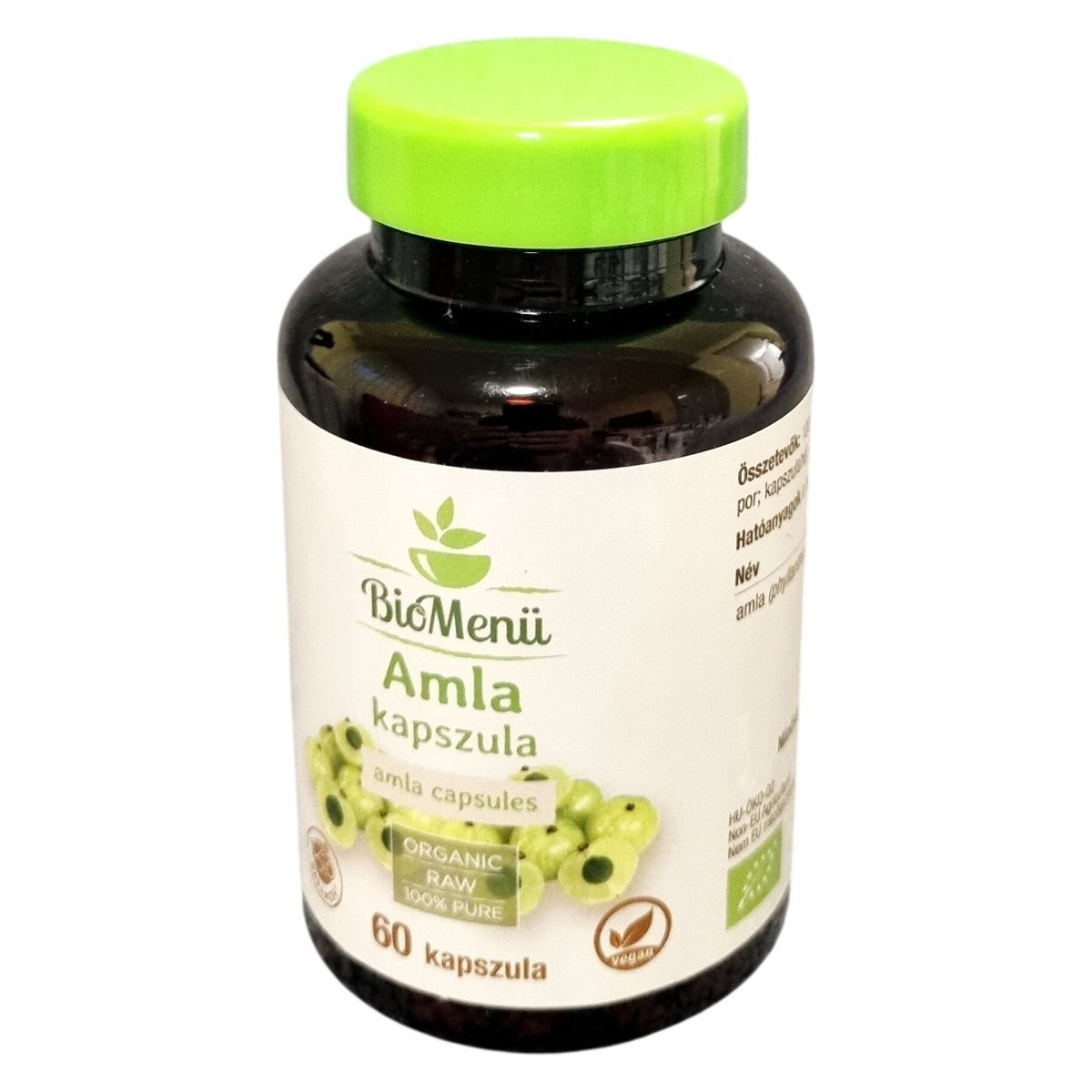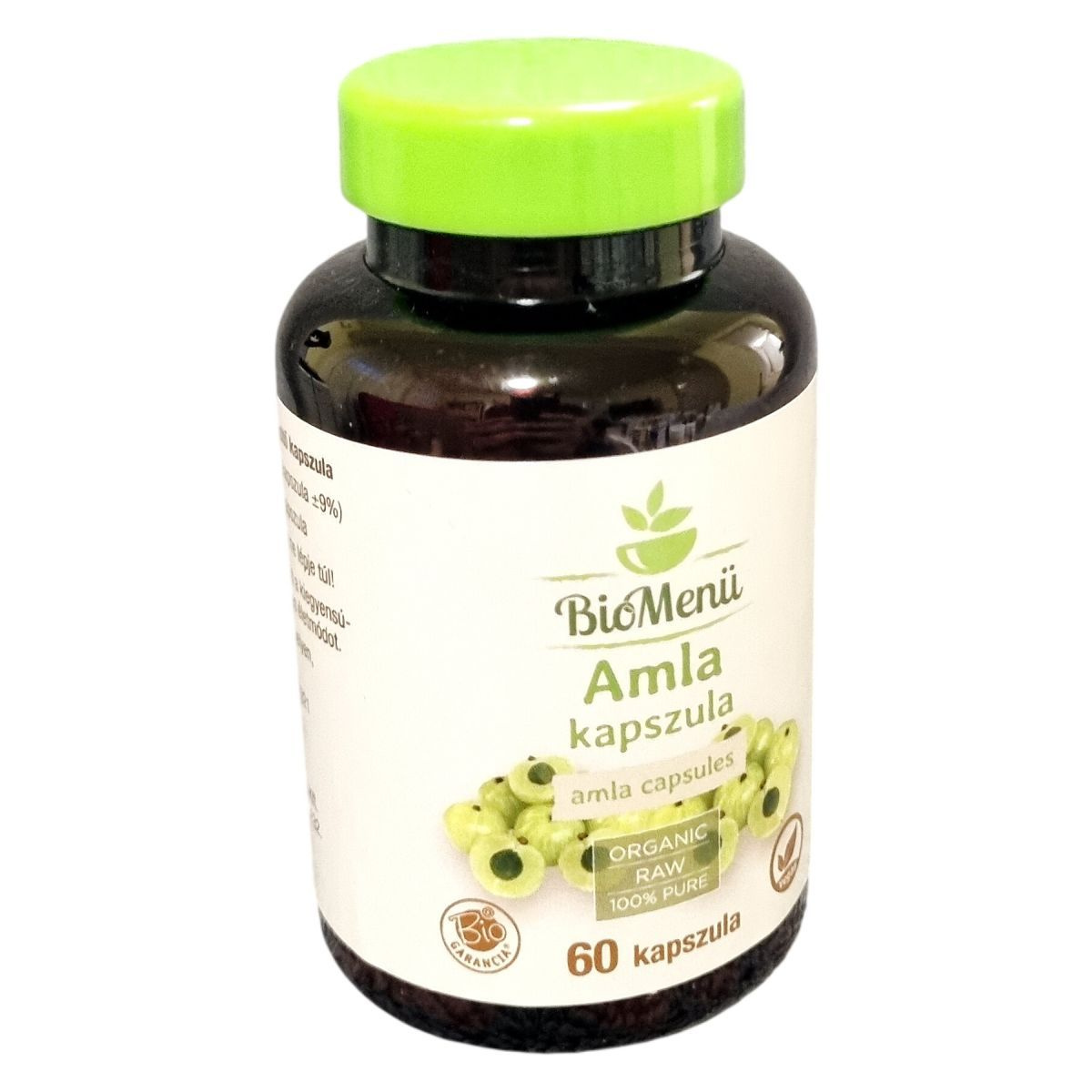 A BioMenü bio amla étrend-kiegészítő kapszula nettó tömege 32 g, 60 db kapszulát tartalmaz, melyek egyenként 550 mg súlyúak ±9% eltéréssel. A termék származási helye India. A kapszulák készítése során 100%-ban bio amla por használatos, amely nem EU mezőgazdaságból származik. A kapszulahéj hidroxipropil-metil-cellulózból áll, mely természetes eredetű összetevő. A termék HU-ÖKO-02 minősítéssel rendelkezik, amely bio minősítésre utal.
