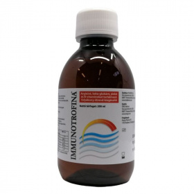 Az L-Arginin nagyon fontos aminósav a szervezet védekezőképességének megfelelő fejlődéséhez és a növekedési mechanizmusokhoz. A Jód olyan ásványi anyag, amely a szervezetünkben lévő nyirokszövetek megfelelő táplálásához kapcsolódik és támogatja a sejtek életképességét. A Foszforglukán egy sörélesztőből (Saccharomyces ceresisiae) származó mikrotápanyag, amely az immunrendszer hatásosságához lehet hasznos, mindenek előtt szója foszfolipidekkel együtt (ez a kombináció PhoshoglucanTM néven került regisztrálásra). Az IMMUNOTROFINA bevitele az említett anyagok hiánya vagy fokozott igénye esetén lehet hasznos. Étrend-kiegészítő, ami nem helyettesíti a vegyes étrendet! Napi ajánlott mennyiség: 1* 5-10 ml, éhgyomorra.