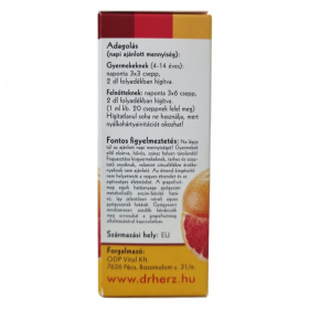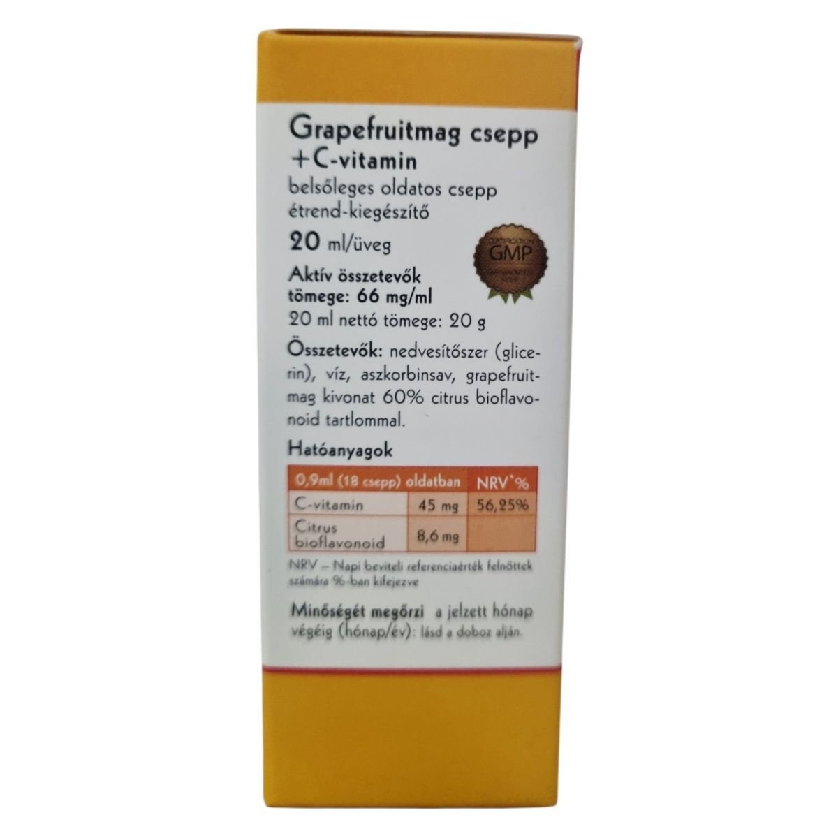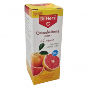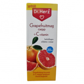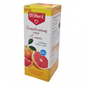 A Dr. Herz Grapefruitmag csepp + C-vitamin egy belsőleges oldatos csepp, amely grapefruitmag kivonatot és C-vitamint tartalmaz. A termék 20 ml-es kiszerelésben kapható, és a grapefruitmag kivonat 60% citrus bioflavonoid tartalommal rendelkezik. A C-vitamin antioxidáns hatású lehet, és hozzájárulhat az immunrendszer támogatásához. A termék használata során fontos, hogy mindig hígítva alkalmazzuk, mivel hígítatlanul nyálkahártyairritációt okozhat. A termék fogyasztása nem ajánlott kisgyermekeknek, terhes és szoptató anyáknak, valamint citrusfélékre érzékenyeknek. A grapefruitmag kivonat gyógyszer metabolizáló enzim-bénító hatása miatt gyógyszert szedőknek érdemes konzultálniuk orvosukkal a használat előtt.