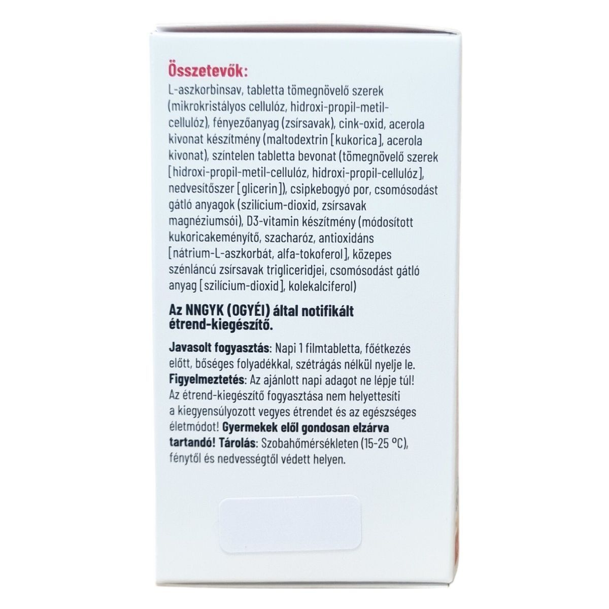 C-vitamin, D3-vitamin, cink, csipkebogyó, acerola
