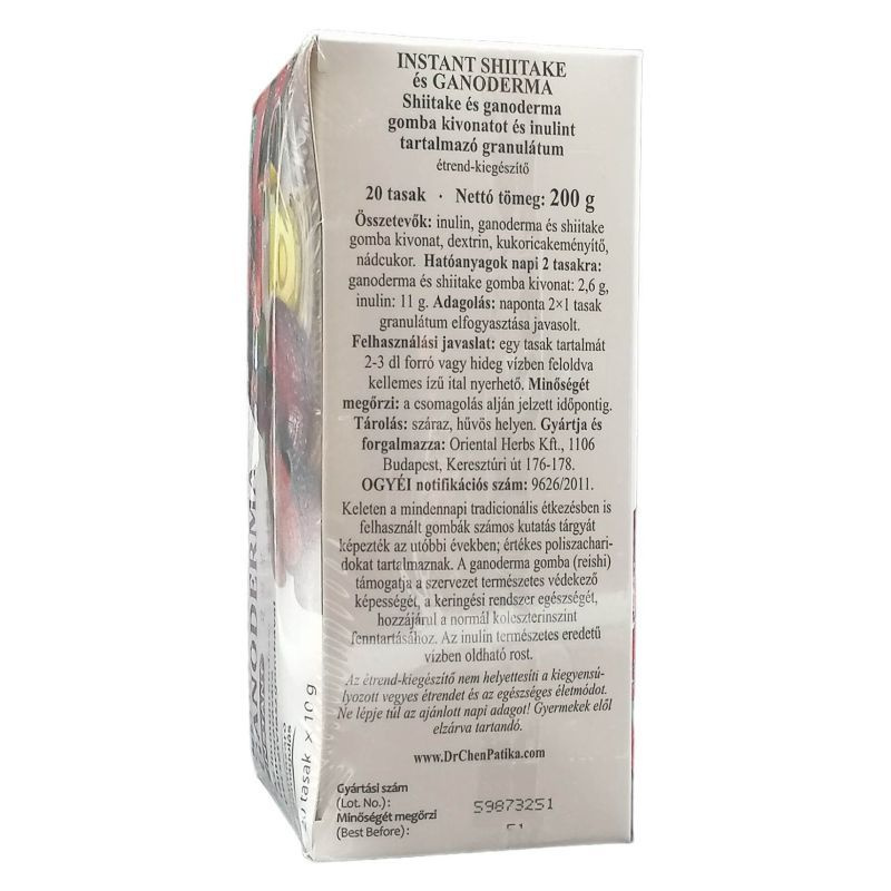 A Shiitake és a Ganoderma gomba egyaránt fontos fehérje-, kálium- és cink-forrás. Mindkét gomba rostanyagban gazdag, nagy mennyiségben tartalmaz a szervezet számára fontos aminosavakat, B- és D-vitamint. Mindkét gomba hozzájárul a természetes immunvédekezéshez (betegségek utáni lábadozáskor, radikális kezelések után rendkívül fontos a legyengült immunrendszer helyreállítása). Naponta 1-2 csésze forró tea fogyasztása javasolt éhgyomorra.