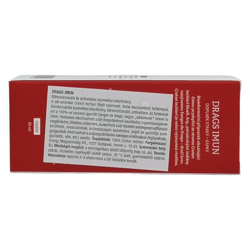 Alkalmazása: jelen készítmény a Croten lechleri Muell. Agr. nevű (ismertebb nevén Sangre de drago, vagyis sárkányvér) növényből származó tiszta kaucsuktejet tartalmaz. Olyan jelentős antibakteriális, vírusellenes, gombásodás-ellenes, antioxidációs és homeosztatikus tulajdonságokkal bír, amelyek felgyorsítják a sebek, a szövetek és bőr, az afták, a fekélyek, a különböző gyulladások - elsősorban a szájüregben és garatban jelentkező gyulladások - gyógyulását.