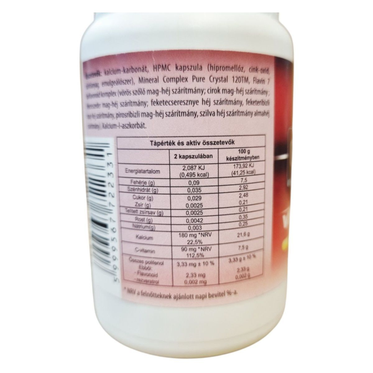 Kalcium: 180 mg *NRV 22,5%, C-vitamin: 90 mg *NRV 112,5%
