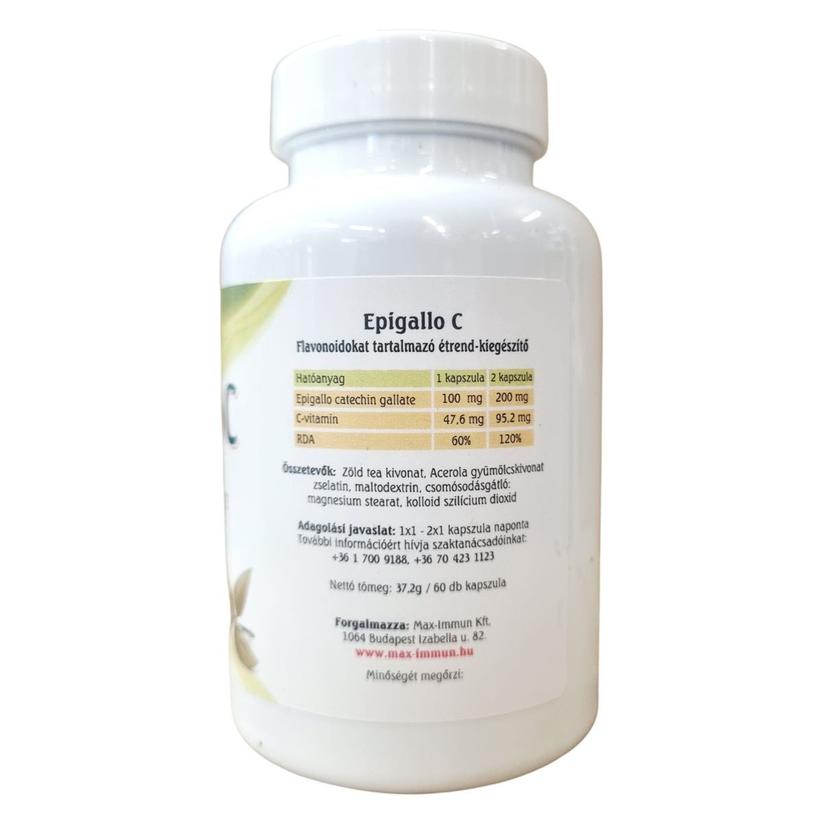 Az Epigallo C egy flavonoidokat tartalmazó étrend-kiegészítő, mely zöld tea kivonatot és acerola gyümölcskivonatot tartalmaz, és C-vitaminnal egészül ki.