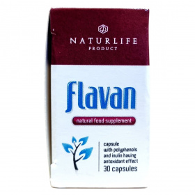A NATURLIFE flavan étrend-kiegészítő kapszula antioxidáns hatású polifenolokat és inulint tartalmazhat, amelyek hozzájárulhatnak a szervezet védelméhez az oxidatív stressz ellen. Az összetevők között megtalálható a szárított szőlő őrlemény, inulin, zselatin, valamint szárított feketeribizli-, feketeszeder-, és feketekersesznye őrlemény. A termék napi kettő kapszula fogyasztását javasolja étkezés előtt, és figyelmeztet, hogy az ajánlott napi fogyasztási mennyiséget ne lépjük túl. A termék nem helyettesíti a kiegyensúlyozott vegyes étrendet és az egészséges életmódot, és kisgyermekek elől elzárva tartandó. Forgalmazója a SZV&M Kft., és az OÉTI engedélyszáma 5526/2009.