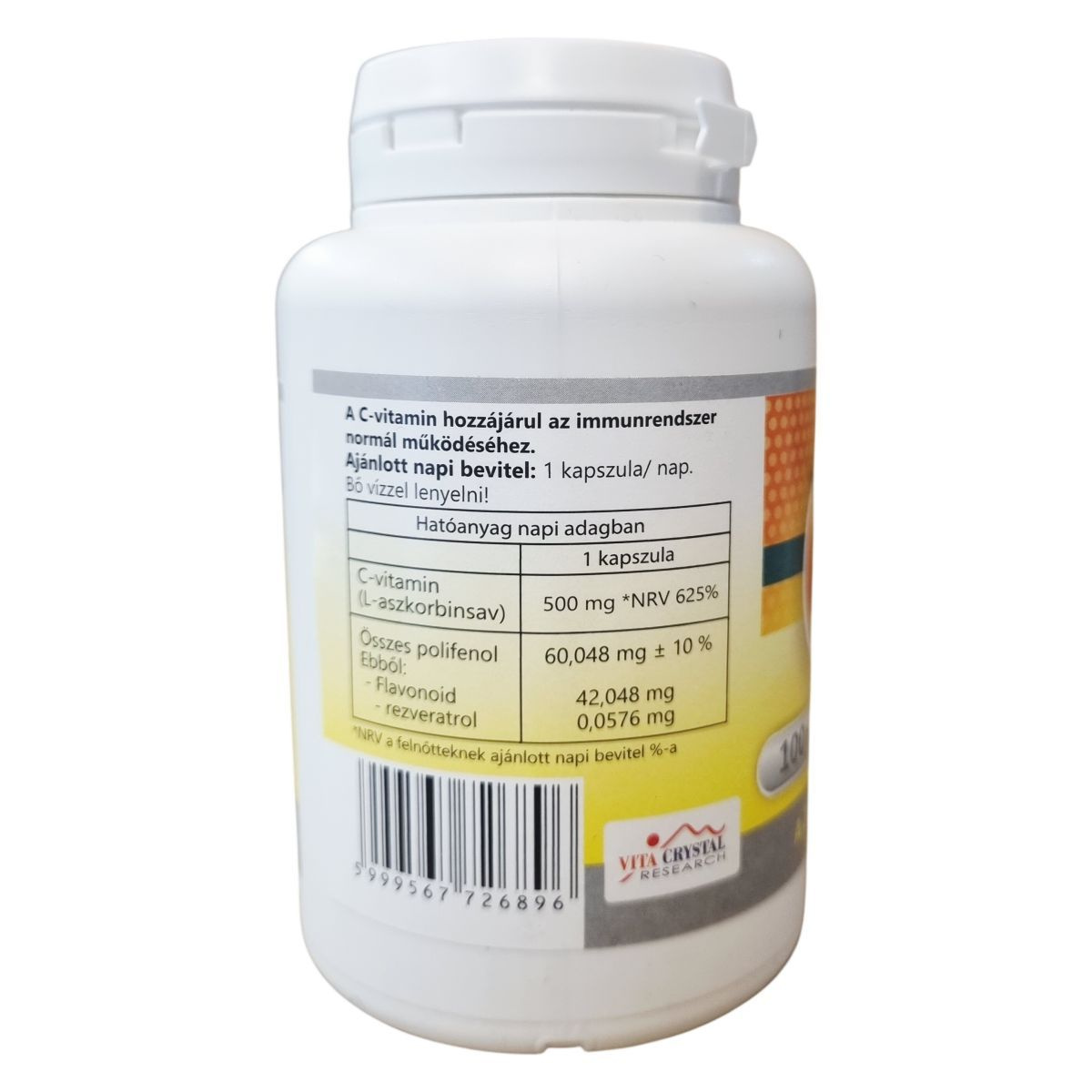 Ez a C-vitamin és polifenol tartalmú étrend-kiegészítő kapszula természetes bioflavonoid komplexet tartalmaz, amely segítheti a szervezet védekezőképességét és hozzájárulhat az immunrendszer egészséges működéséhez.