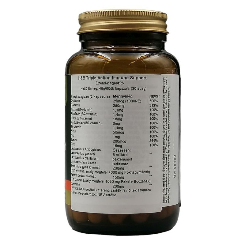 Ez a kapszula hatékonyan támogatja az immunrendszert, gazdag C- és D-vitaminban, valamint ásványi anyagokban, mint a cink és a szelén. Természetes összetevői, például fekete bodza és fokhagyma, hozzájárulnak a bélflóra egészségéhez is.