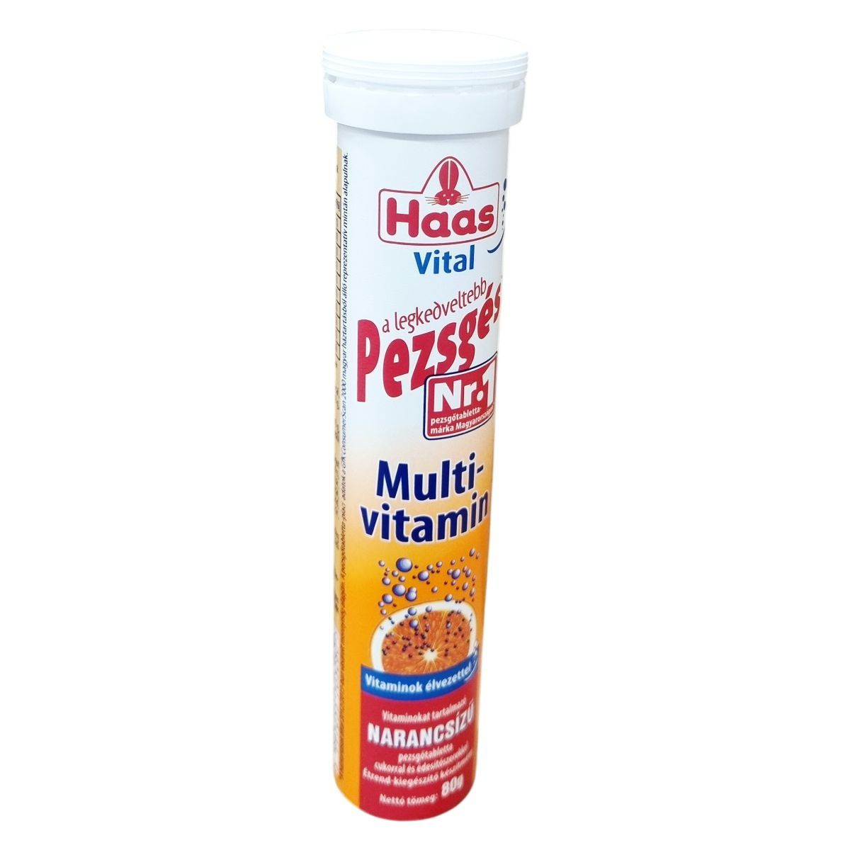 Multivitamin pezsgőtabletta. Vitaminokat tartalmazó narancsízű pezsgőtabletta cukorral és édesítőszerekkel. Étrend-kiegészítő készítmény. NRV[%]: tápanyagok mennyisége a napi beviteli referenciaérték %-ában kifejezve. Felhasználási javaslat: Egy darab pezsgőtabletta 2 dl hideg vízben történő feloldásával vitaminokat tartalmazó narancsízű ital nyerhető. Nettó tömeg: 80 g. A pezsgőtabletta-piaci adatok a GfK ConsumerScan 2000 magyar háztartásból álló reprezentatív mintán alapulnak.
