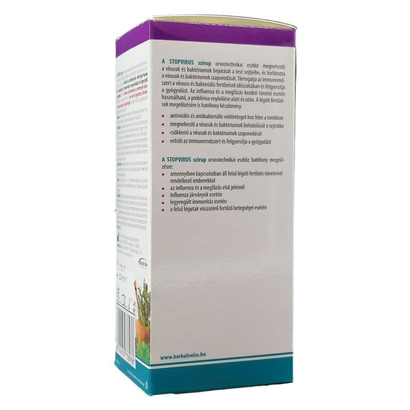 A StopVirus Medical szirup (orvostechnikai eszköz) antivirális és antibakteriális védőréteget képez a torokban. Támogatja az immunrendszer regenerálódását és felgyorsítja a gyógyulást. Korlátozza a vírusok és baktériumok kötődését és tapadását a nyálkahártya sejtjeinek felületén, korlátozva a vírusok és baktériumok számát és további szaporodását.