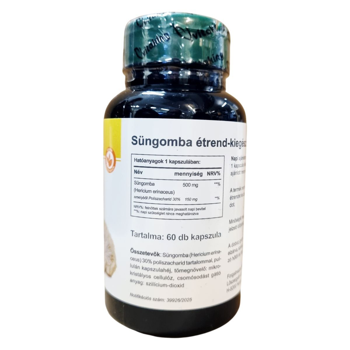 Süngomba (Hericium erinaceus): 500 mg