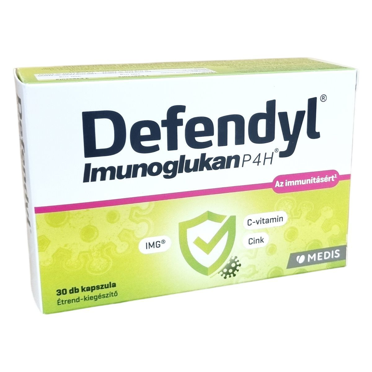 A Defendyl Imunoglukan P4H® kapszula 30 darabos kiszerelésű készítmény, mely IMG®-et (laskagombából izolált pleurán), C-vitamint és cinket tartalmaz. A vitaminok a napi beviteli referenciaérték szerint segíthetik az immunrendszer normál működését. A termék vegetáriánusok számára is alkalmas. Az adagoláskor ügyelni kell arra, hogy a kapszulákat egészben kell lenyelni, és az ajánlott adagot nem szabad túllépni. 6 év alatti gyermekeknek nem javasolt a készítmény használata.