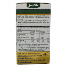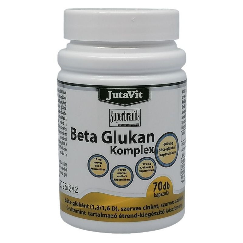 A JutaVit Beta Glukan Komplex Saccharomyces Cerevisiae fajtájú élesztőből kivont béta-glükánt, szerves cinket, szerves szelént és C-vitamint tartalmaz. A béta-glükán a természetben is előforduló poliszaharid; több altípusát különítik el, attól függően, hogy hány szénatom kapcsolódik a molekulához. Gombák, növények és baktériumok sejtfalának alkotóelemei. Oldható és oldhatatlan formában egyaránt létezik: az oldhatatlan béta-glükán (1,3/1,6 D) jóval nagyobb biológiai aktivitással rendelkezik, mint az oldható.