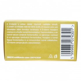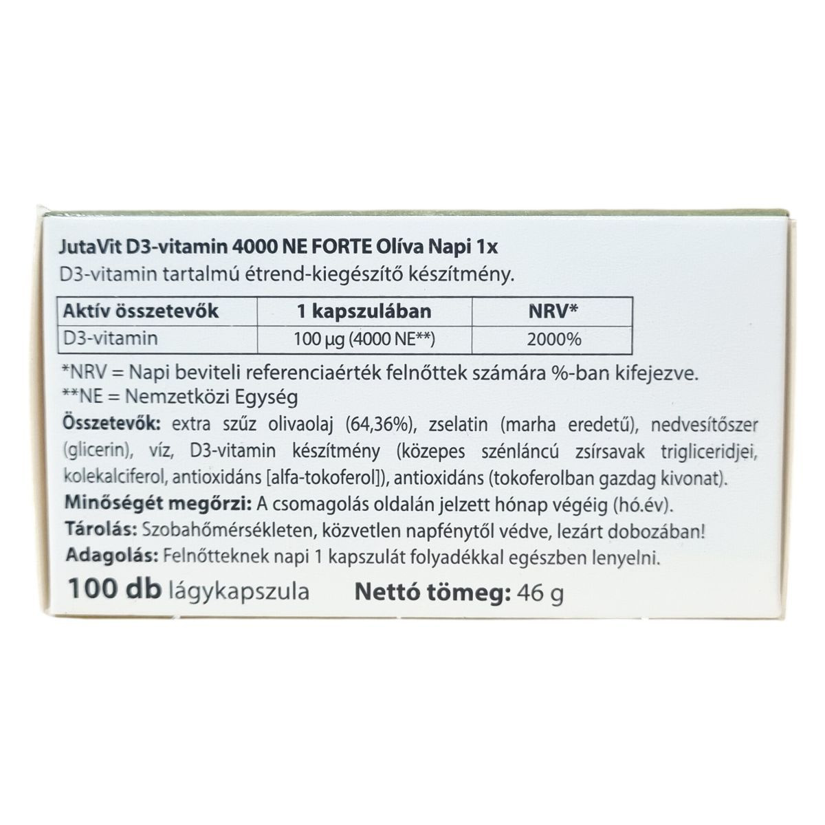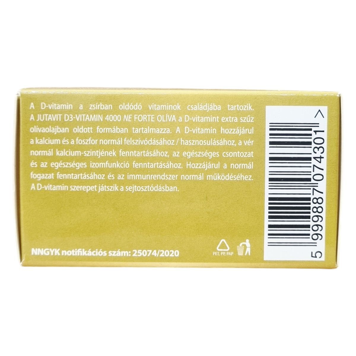 A Jutavit D3-vitamin 4000 NE Forte Olíva, a D-vitamint extra szűz olívaolajban oldott formában tartalmazza.