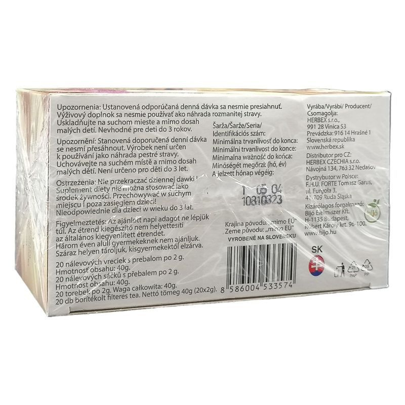 Összetevők: lapacho 72%, rooibos, fahéj, szegfűszeg. Nettó tömeg: 40 g, 20 db 2 g-os borítékolt filter tasak. Elkészítése: 1 db filter tasakot csészébe helyezzük, leforrázzuk majd 8-10 percig állni hagyjuk.
