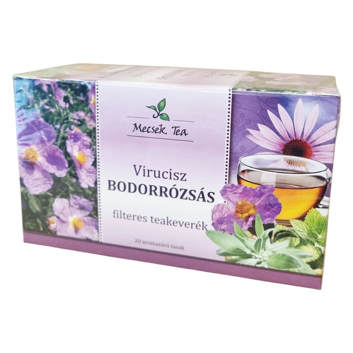 A Virucisz Bodorrózsás filteres teakeverék elkészítése során egy aromazáró tasak tartalmát 2,5 dl forró (100°C) vízzel kell leönteni, majd lefedve 10 percig állni hagyni. A tea frissen elkészítve, de kihűlés után édesítés nélkül szájöblögetésre is alkalmas. A gyógynövények hatóanyagai elősegíthetik a felső légúti megbetegedések leküzdéséhez szükséges ellenállóképesség kialakulását, mérsékelhetik vírusos és bakteriális fertőzések tüneteit, és hozzájárulhatnak a komplex gyógyszeres kezelés eredményességéhez. A termék Nettó tömege 24 g, 20 aromazáró filtert tartalmaz. Mecsek Tea természetesen hat!