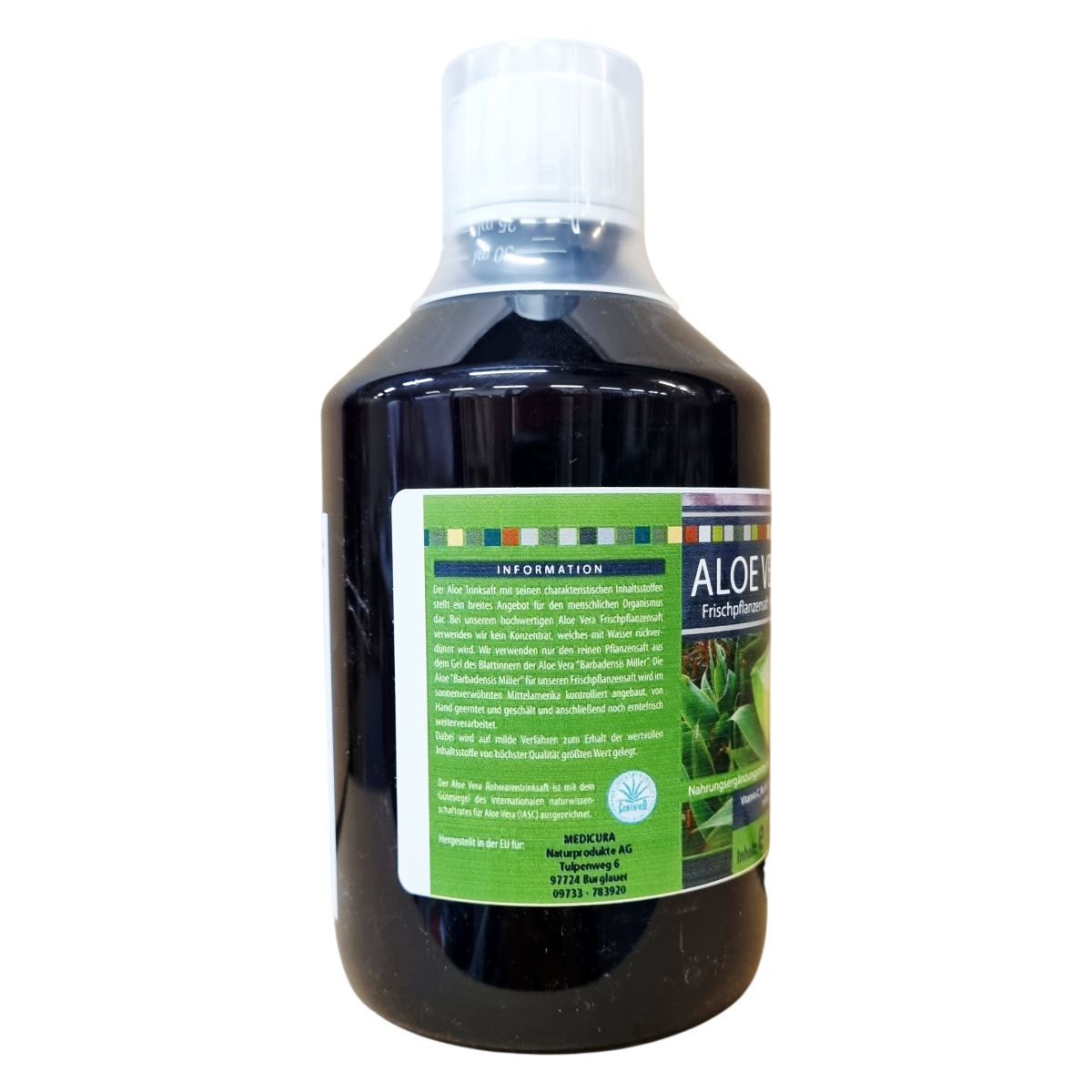 Az Aloe Vera Frischpflanzensaft egy kiváló minőségű, koncentrátum nélküli ital, amely szigorúan ellenőrzött aloe vera növényből, a Barbadensis Miller fajtából készül. A növény a napfényes Közép-Amerikában kézi munkával szüretelt és hámozott, majd frissen dolgozzák fel az értékes hatóanyagok megőrzése érdekében. A termék a Nemzetközi Aloe Vera Tudományos Tanács (IASC) minőségi jelzésével rendelkezik. A gyártás az Európai Unióban történik, és a mellékelt vitaminok komplexét tartalmazza az egészséges életmód támogatására. Az Aloe Vera ital kiegyensúlyozott étrend mellett fogyasztható, és a természetes összetevők természetes ingadozásainak van kitéve.