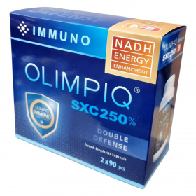 IMMUNO. NADH ENERGY ENHANCMENT. DOUBLE DEFENSE. OLIMPIQ IMMUNO protection complex. Nettó tömeg A: 56,4 g (90 x 627 mg). Nettó tömeg B: 55,2 g (90 x 613 mg). 2x90 pcs.