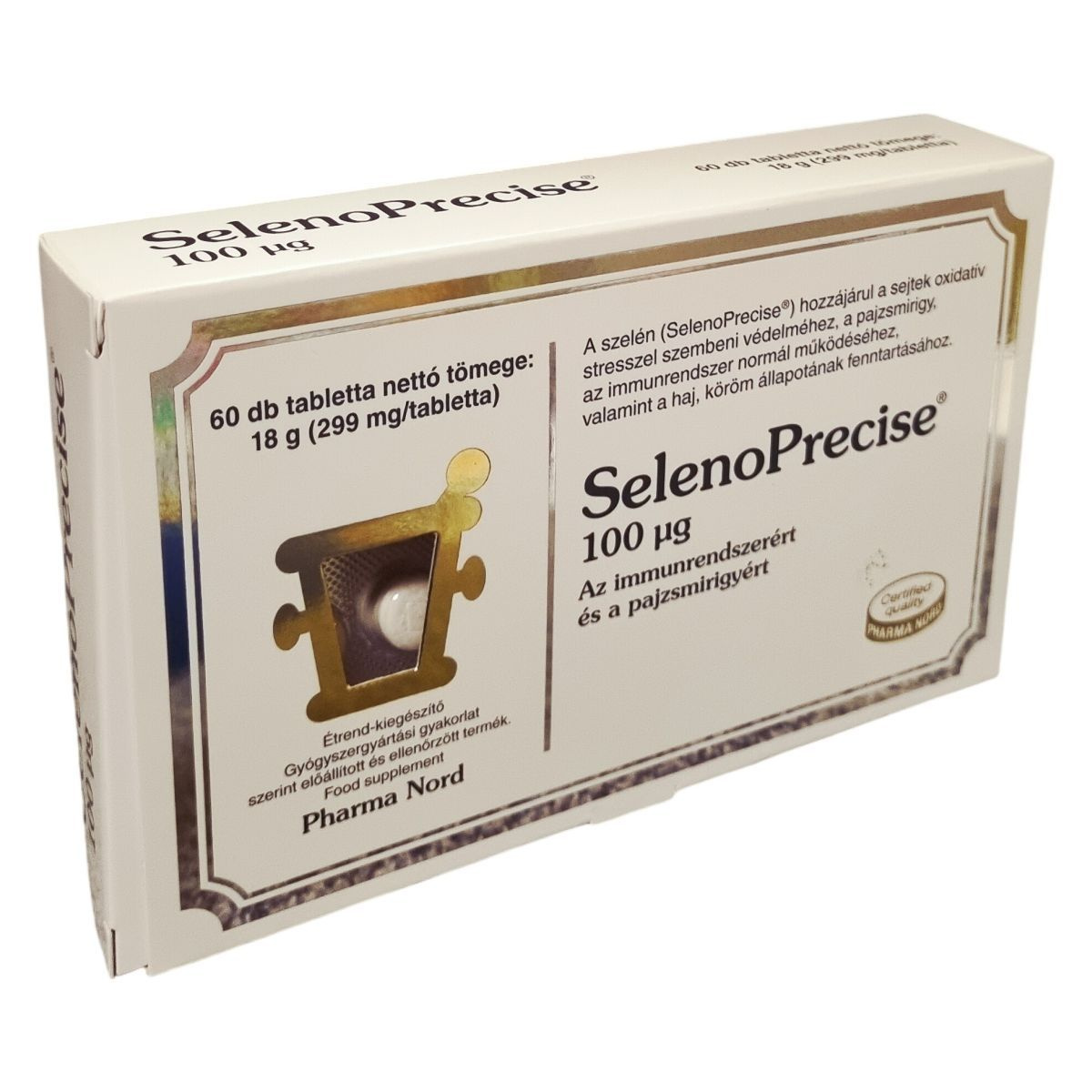 A SelenoPrecise® szelént tartalmazó étrend-kiegészítő tabletták szerves forrásból biztosítják a szelént, amely hozzájárulhat a sejtek oxidatív stresszel szembeni védelméhez, a pajzsmirigy és az immunrendszer normál működéséhez, továbbá a haj és köröm egészségének fenntartásához. A termék alkalmazása napi egy tabletta formájában ajánlott, mely 299 mg tömegű. A készítmény mikrokristályos cellulóz, dikalcium-foszfát, szelénes élesztő, szilícium-dioxid, zsírsavak magnéziumsói és hidroxipropil-metil-cellulóz összetevőket tartalmaz. Gyógyszergyártási gyakorlat szerint előállított, ellenőrzött minőségű termék, vegánok és vegetáriánusok is fogyaszthatják. Tárolása szobahőmérsékleten javasolt, és a minőségét a csomagoláson jelzett időpontig megtartja.