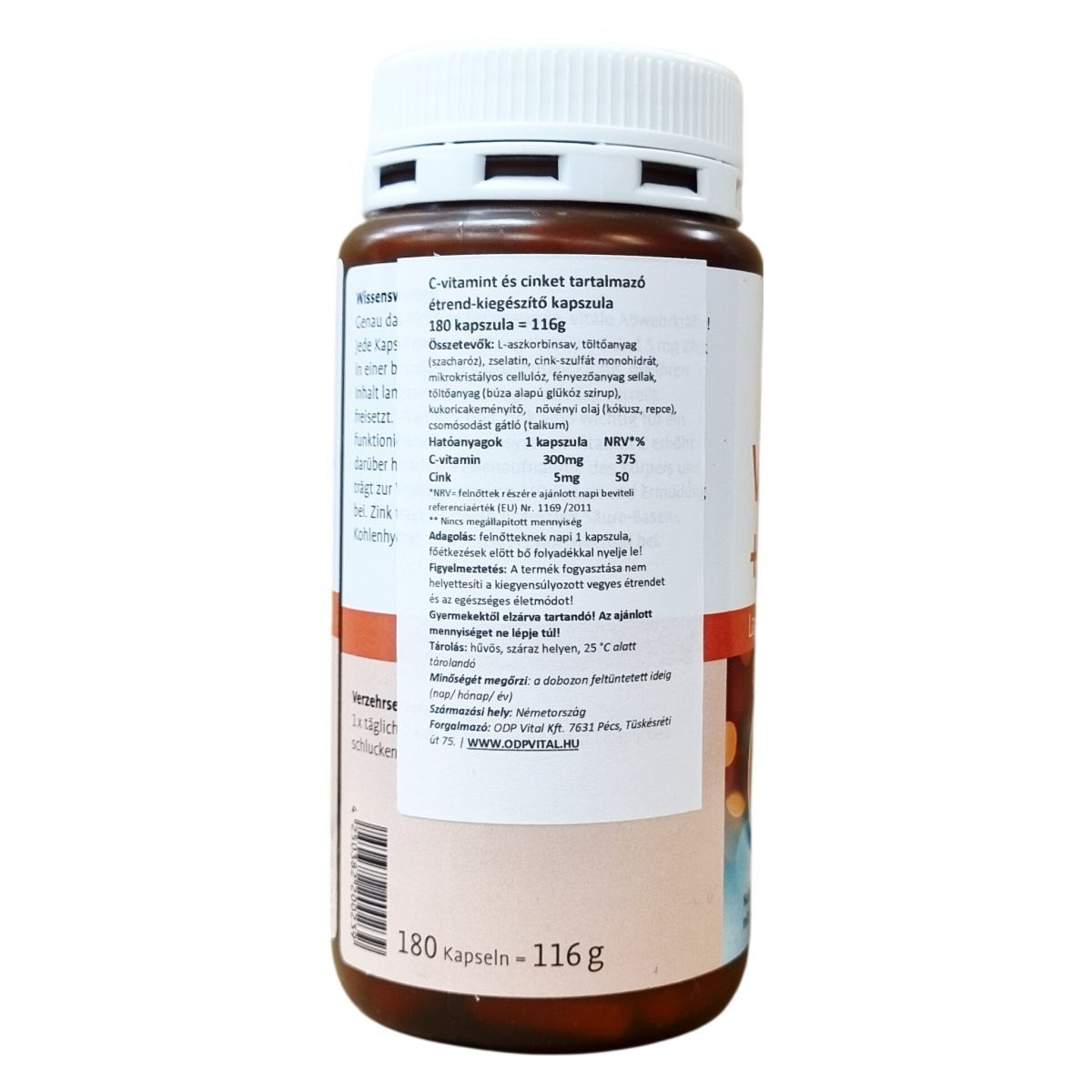 Ez a németországi gyártású, hosszú hatású kapszula C-vitamint és cinket tartalmaz, melyek mennyisége megfelel a napi beviteli referenciaértékeknek. A kapszula összetevői között megtalálhatóak az L-aszkorbinsav, zselatin, valamint növényi eredetű olajok és különféle töltőanyagok. A termék nem helyettesíti a változatos és kiegyensúlyozott étrendet és az egészséges életmódot, továbbá gyermekektől elzárva kell tartani. A kapszulát javasolt főétkezések előtt bő folyadékkal bevenni, és száraz, hűvös helyen tárolni.