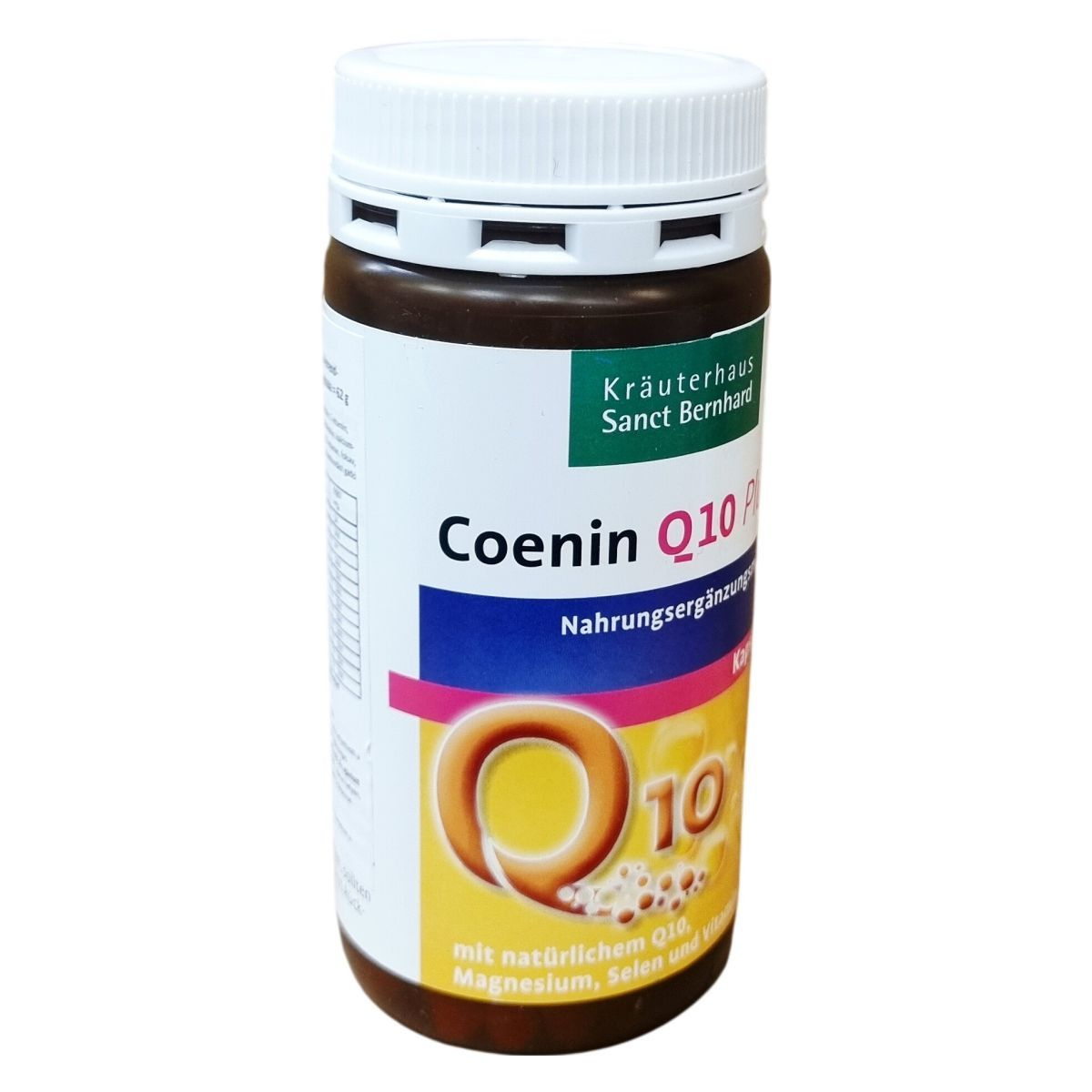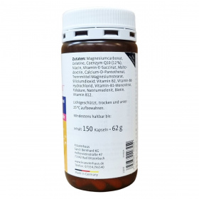 Magnézium-karbonát, zselatin, koenzim Q10 (12%), niacin, E-vitamin-szukcinát, maltodextrin, kalcium-D-pantotenát, csomósodást gátló magnézium-sztearát, szilícium-dioxid, B2-vitamin, B6-vitamin-hidroklorid, B1-vitamin-mononitrát, folsav, nátrium-szelenit, biotin, B12-vitamin.