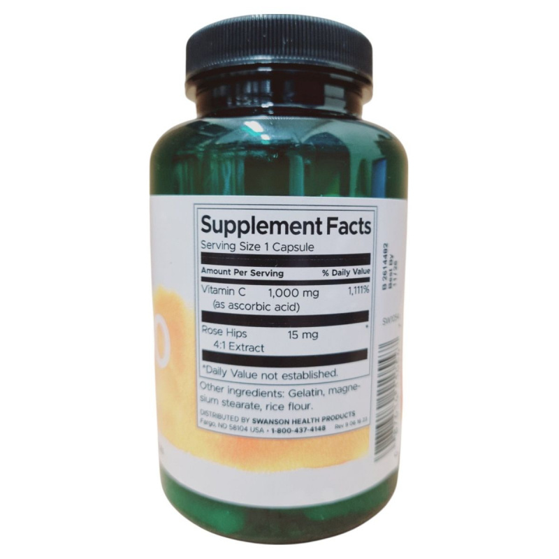 Serving Size 1 Capsule: Vitamin C (as ascorbic acid) 1,000 mg, % Daily Value 1,111%