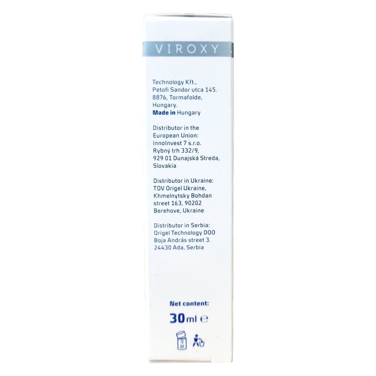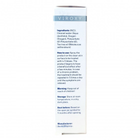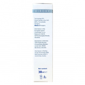 A VIROXY O1 spray egy aktív oxigén alapú kozmetikum, amely átfogó vírus-, baktérium- és gombaellenes hatással rendelkezik, elősegítve a bőr gyors regenerálódását és a nyálkahártyák megnyugtatását.