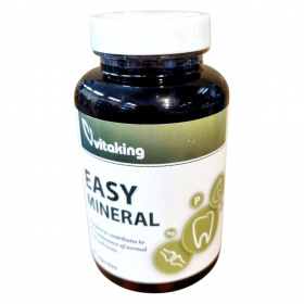 Az EASY MINERAL étrend-kiegészítő 90 kapszulás kiszerelésben kapható, és különféle ásványi anyagokat tartalmaz, amelyek hozzájárulhatnak a normál fogazat és csontok fenntartásához. A foszfor és a magnézium szerepe lehet a csontok és fogak egészségének támogatásában. A termék napi ajánlott mennyisége 3 kapszula, amelyet étkezés közben javasolt bevenni. A termék nem helyettesíti a vegyes étrendet és az egészséges életmódot, és gyermekek elől gondosan elzárva, száraz, hűvös helyen, sugárzó hőtől és fénytől védve tartandó. Forgalmazza a Vitaking Kft., és az OGYÉI nyilvántartási száma 28978/2022.