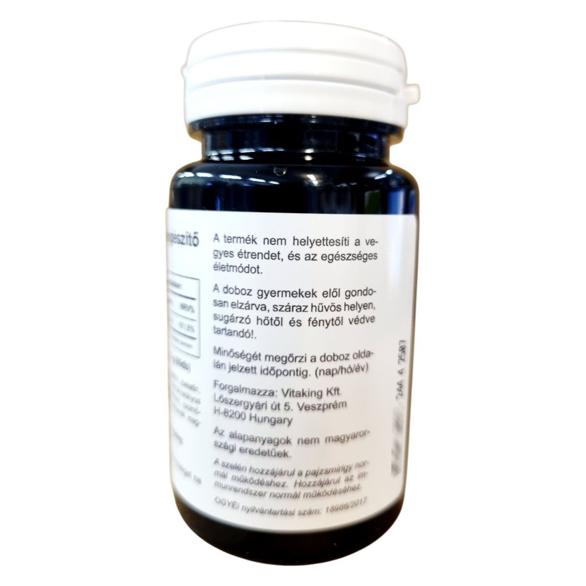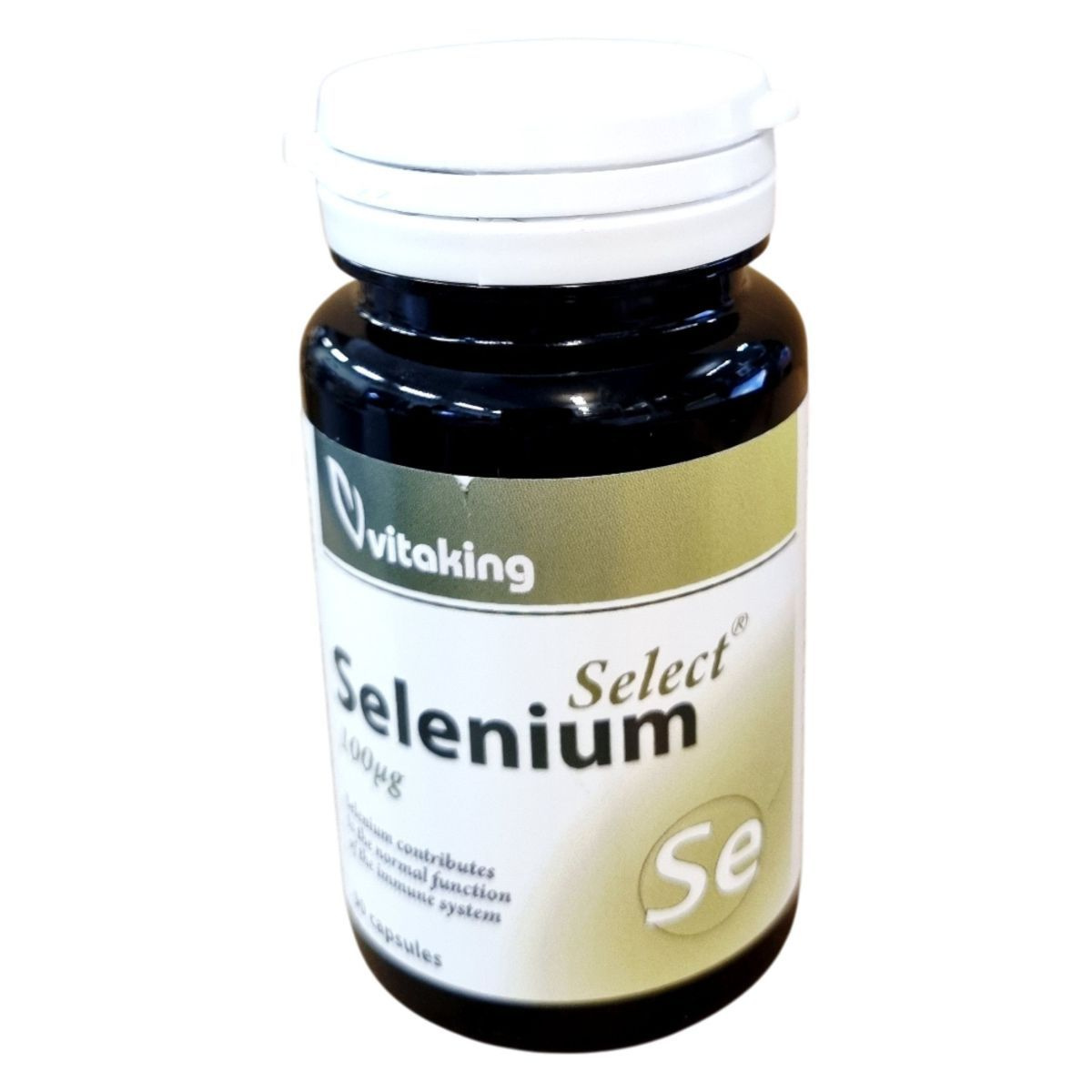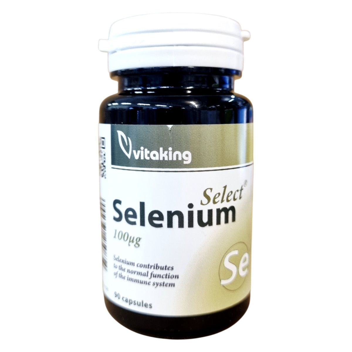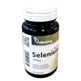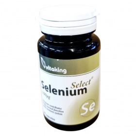 A Vitaking Select Selenium egy étrend-kiegészítő, amely 90 kapszulát tartalmaz. A termék szelént tartalmaz, amely hozzájárulhat az immunrendszer és a pajzsmirigy normál működéséhez. A szelén mennyisége kapszulánként 100µg, ami a felnőttek számára ajánlott napi referencia beviteli érték 181.8%-át teszi ki. Az összetevők között megtalálható a maltodextrin, zselatin, mikrokristályos cellulóz, L-szeleno-metionin, valamint zsírsavak magnéziumsói. A termék nem helyettesíti a vegyes étrendet és az egészséges életmódot, és gyermekek elől elzárva, száraz, hűvös helyen tárolandó. A forgalmazó a Vitaking Kft., és a termék OGYÉI nyilvántartási száma 18966/2017.