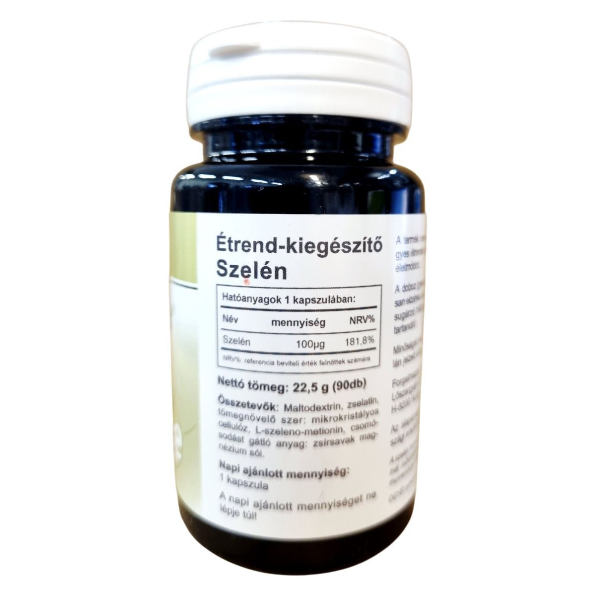 Maltodextrin, zselatin, tömegnövelő szer: mikrokristályos cellulóz, L-szeleno-metionin, csomósodást gátló anyag: zsírsavak magnéziumsói.