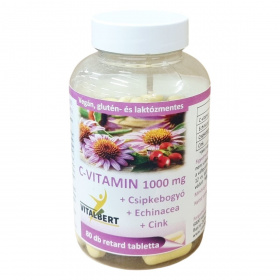 1000 mg C-vitamin retard tabletta csipkebogyóval, bíbor kasvirággal és cinkkel.